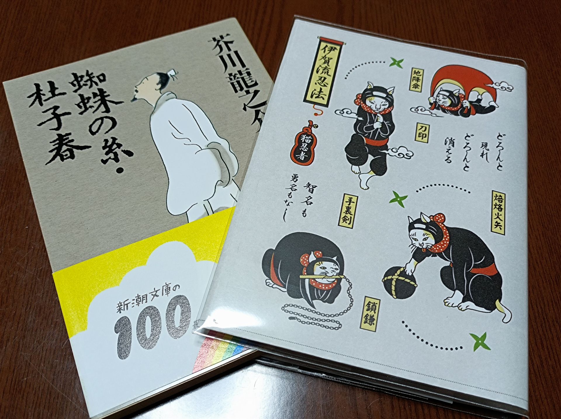 きらた@kirata2026年2月25日読み始めた収録作メモ夏フェアの時に買った芥川龍之介を読み始めます 芥川の年少文学モノを10篇収録した作品集 「蜘蛛の糸」 「犬と笛」 「蜜柑」 「魔術」 「杜子春」 「アグニの神」 「トロッコ」 「仙人」 「猿蟹合戦」 「白」 全国ご当地おみやげブックカバー(ネップリ配布版)、伊賀の京丸屋さんを纏わせました ⸜(*ˊᗜˋ*)⸝