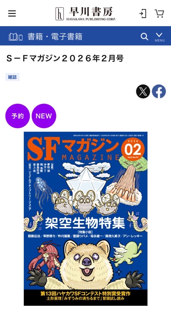 S-Fマガジン 2026年 2月号