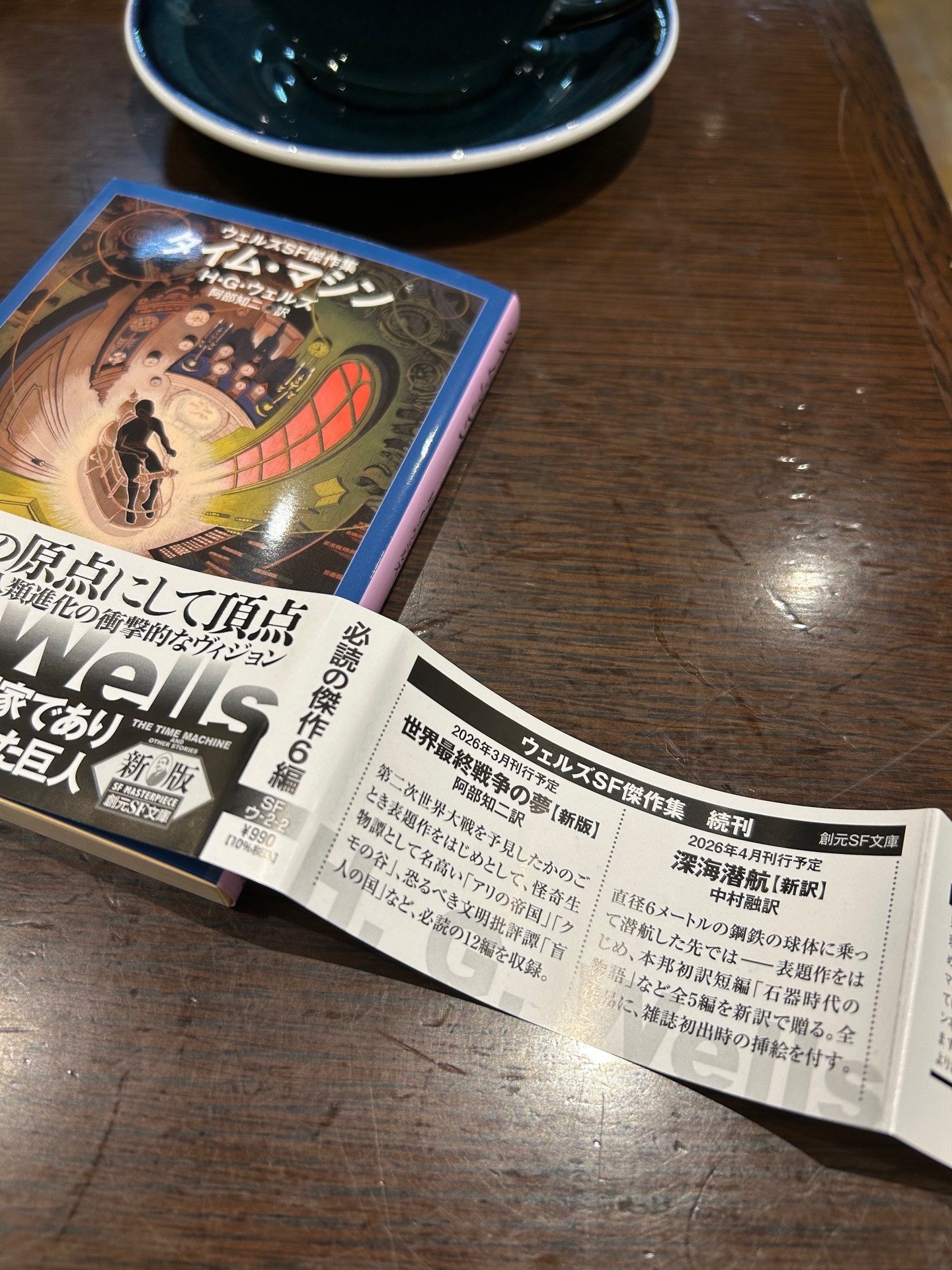 群青@mikanyama2026年1月30日買ったちょっと開いた@ カフェ1965年12月3日 初版 2024年4月26日 48版 2026年1月30日 新版 初版 新訳ではない。 訳者の阿部さんは1973年没。 今年は3月に新版『世界最終戦争の夢』、 4月に新訳(中村融)『深海潜航』が出るって。 中村さんの訳かー。『キャプテン・フューチャー最初の事件』『ウは宇宙船のウ(新訳版)』も中村さんだった。