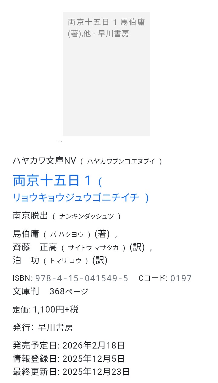 u・ェ・u@koinu2026年3月20日読み終わった2026年おすすめ本おもしろ~~~~~~~!!! 命を狙われた太子が敵だらけの中、数少ない味方とともに王都に戻る…という、キングダム序盤のようなデルフィニア戦記のような、アルスラーン戦記のような王道もの。面白くないわけない- 真代@integra182026年3月18日読み終わった以下は感想です。 15世紀の明朝が舞台の歴史・冒険小説。 歴史をよく知らないし、言葉が難しくもあるのだけど、そんなこと気にならないくらいに面白い。 決死行の幕は上がったばかり… 中国の歴史にも興味が湧いてきたところ。 続きももうすぐ