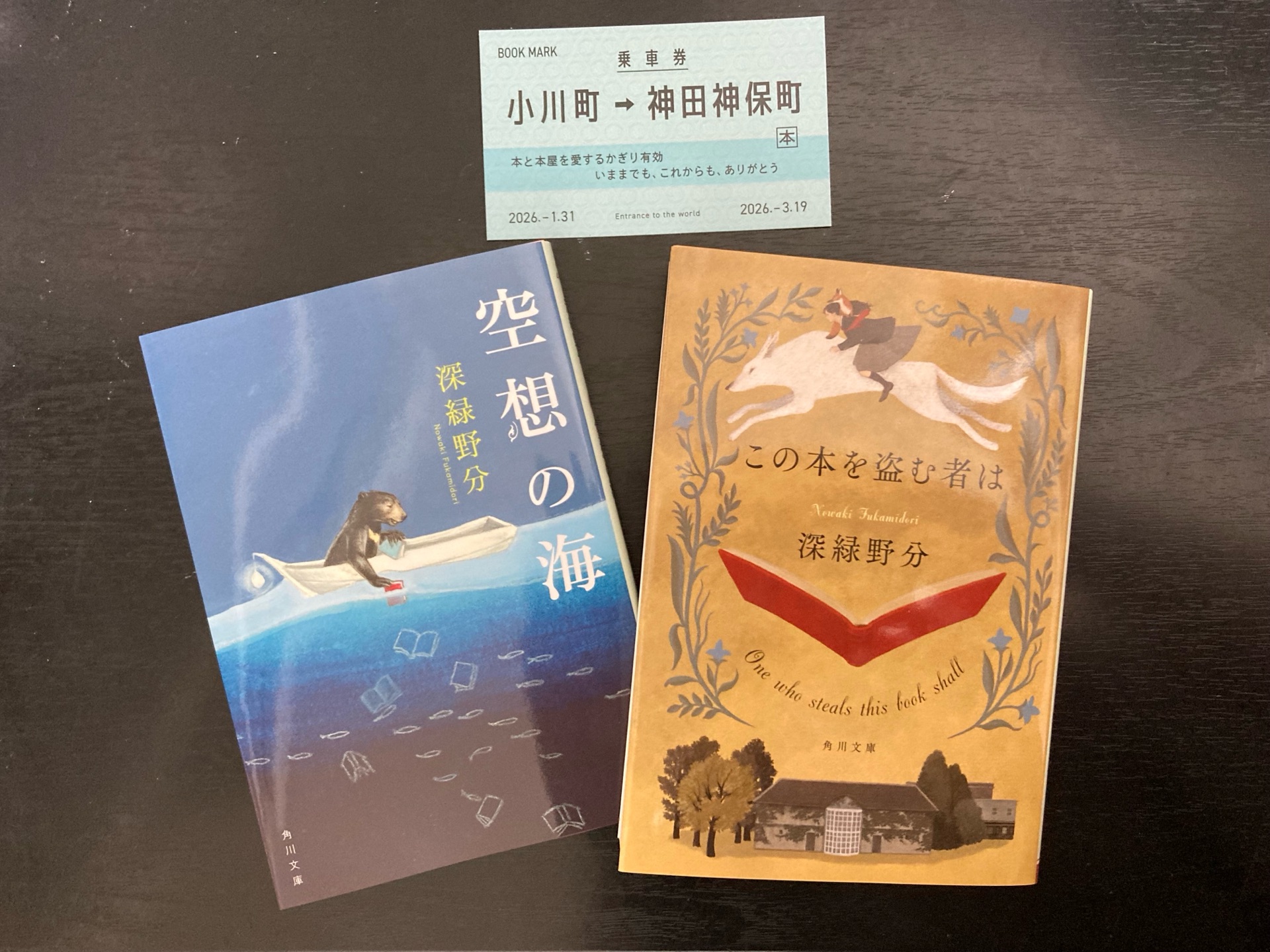 三省堂書店の小川町仮店舗でもらえる切符🎫かわいい。 『この本を盗む者は』のスピンオフが『空想の海』に載ってるとのことで一緒に購入。