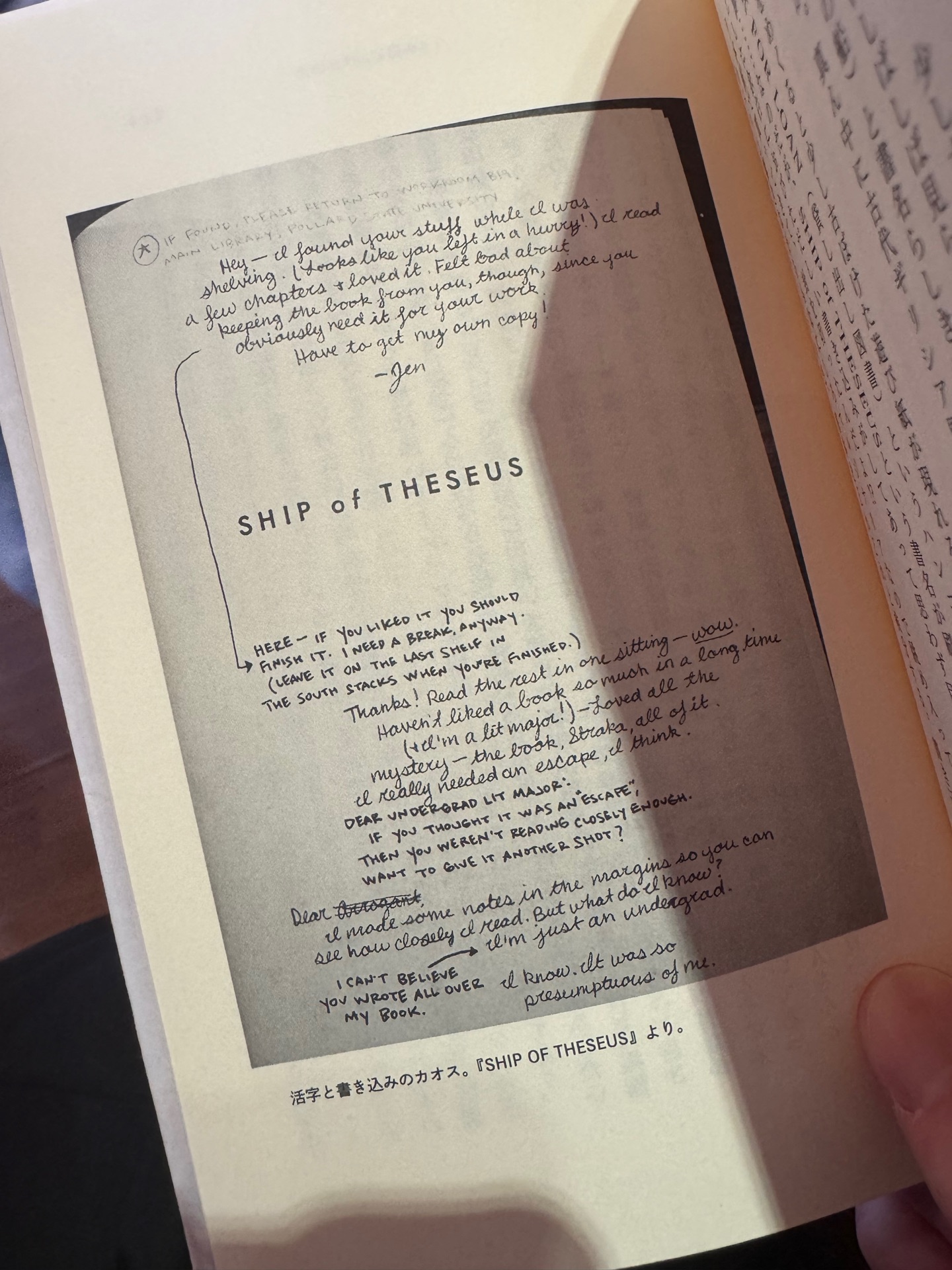 1に続いて先に買ってた2を読み終わる。まさかJ. J. エイブラムスがマルジナリアに出てくるなんて! 彼の映像作品はエイリアスが好きなのだけれど、ついぞ周囲でファンに会ったことが無いのよな。そういえば別の本でマルジナリア始めてみた!