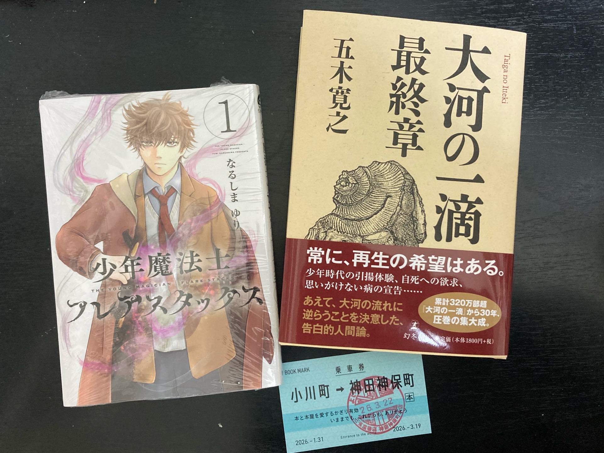 杉野ひこ@suginohiko2026年3月22日買った積読中@ 三省堂書店 神田神保町本店リニューアルした三省堂神保町本店に行ってきた。小川町仮店舗⇒神保町本店の切符🎫にスタンプ押せた(*'▽'*) 前作の大河の一滴は母が愛読してたので今作は仏壇にお供えしてから読む。 少年魔法士は続編かな?!新シリーズかな?!?! 1階の段々になったフロアの見晴らしはいいね。 各フロアの棚の所々に座れる場所があるのもいいね。 ただ、買いたい本が決まってても探しづらいし見つけづらいし。慣れるまでは真っ先に検索機を頼る。 どちらかというと、何か読みたくなる本あるかな…って気分で立ち寄るのに向いてるのかもしれない。 併設カフェはそこそこ空席もあったので使いやすそう。
