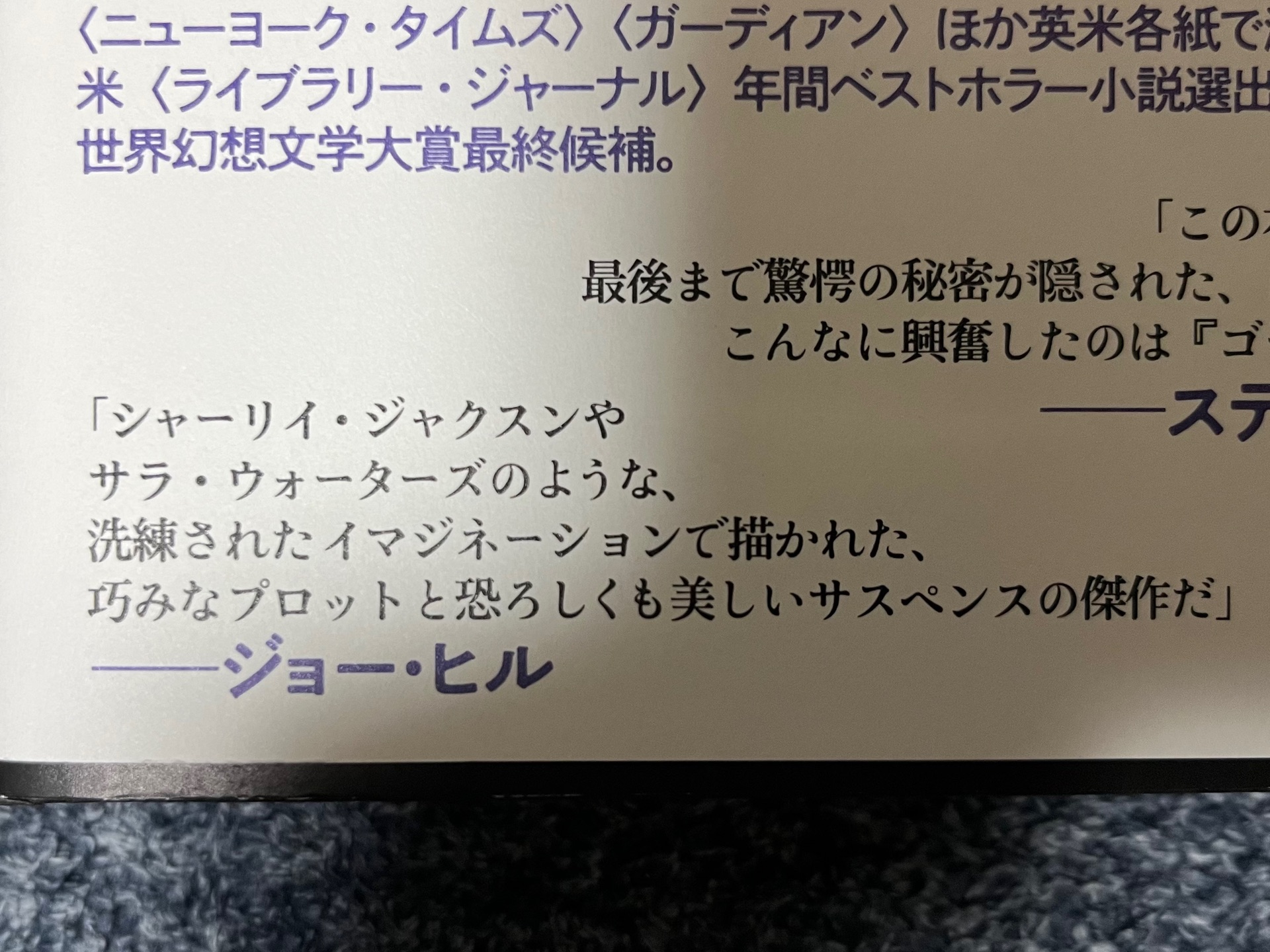本屋さんで何気なく手に取った一冊。 シャーリイ・ジャクスンとサラ・ウォーターズの名前を出されたら、買わないわけにはいかない。