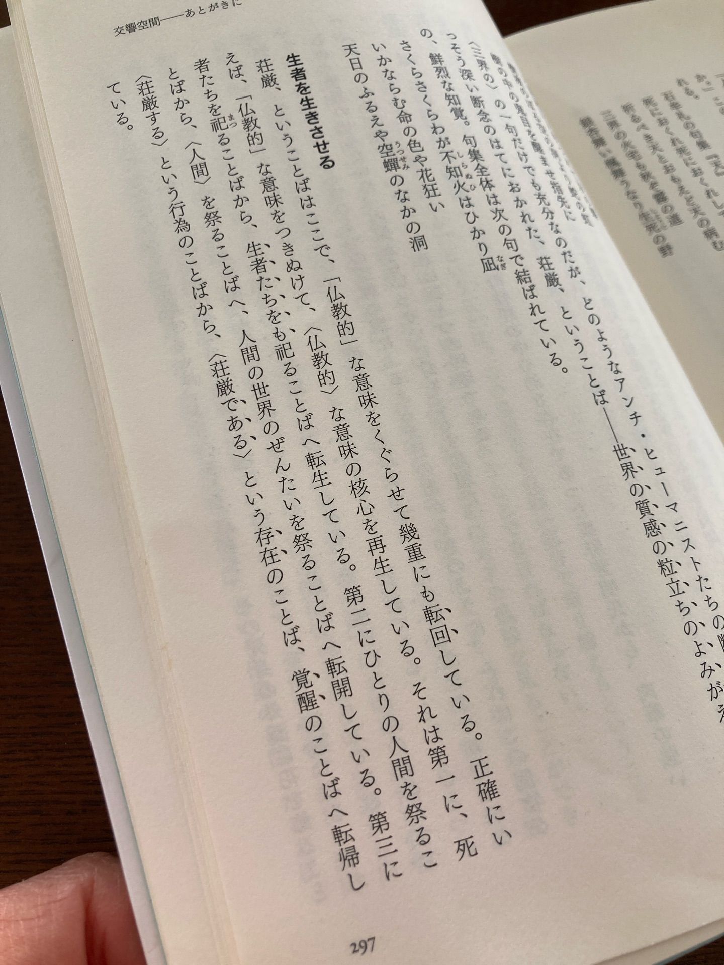 Rica@rica_bibliotheca2026年1月12日読み終わった図書館本河合隼雄、大岡昇平、吉本隆明、石牟礼道子、山田太一 との対話、著者による「交響空間ーあとがきに」、を読んだところで返却. この「あとがきにー」でふれられた石牟礼道子の〈人間はなお荘厳である〉ということばについての著者の考察と文章(こんなふうに表現できるなんて!)に胸を打たれた. 筆写必須. __________ 石牟礼さんのように、人間の生や、虫たちや樹たちの生の輝きの核の部分を明視しつすことをとおして、いつか、ぼくも目がみえなくなっていくことができたら、どんなにいいか、と思います。 (対談 「石牟礼道子 前の世の眼。この生の海。」より) __________