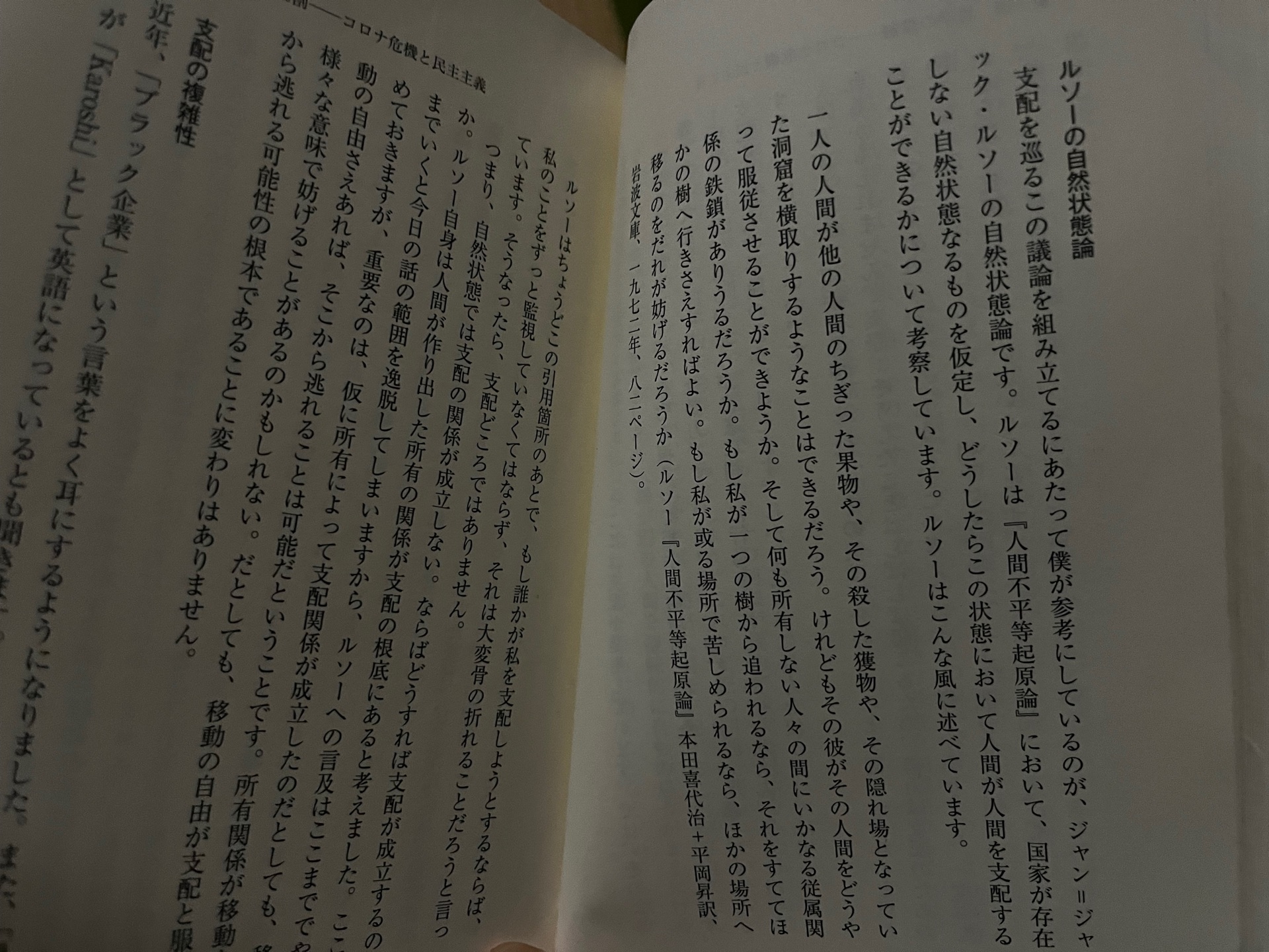 ゆらゆら@yuurayurari2025年6月25日読み終わった2つの講演の記録で、前半はコロナ禍で炎上したというイタリアの哲学者アガンベンの発言(=特に、移動の自由まで奪われて何も声を上げない教会の批判)を分析。後半の、消費・必要・目的に取り込まれないための浪費の推奨の話がよかった。そうありたい。 (23.7.9読了)