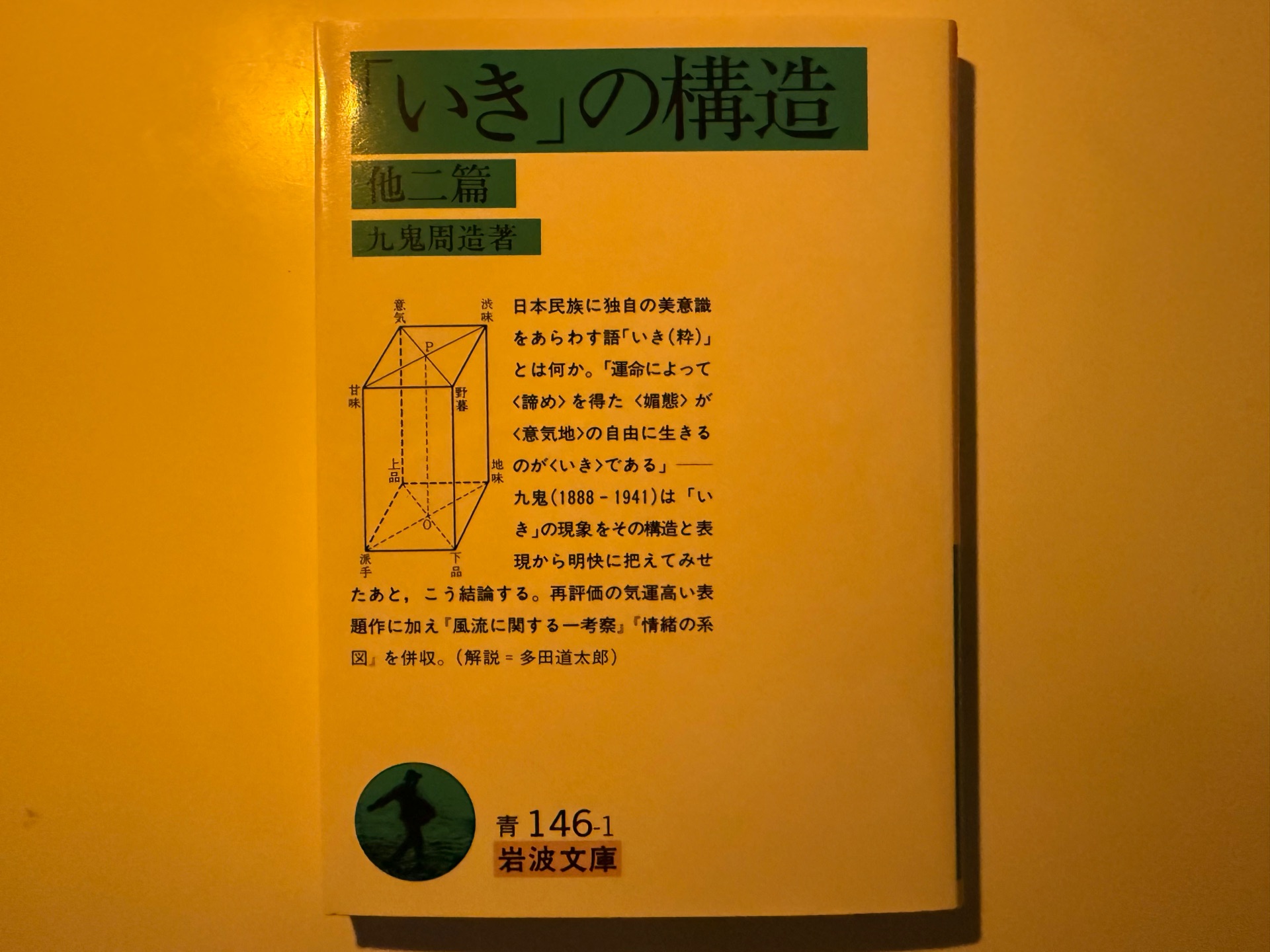 九鬼がハイデガーの教え子だったことを知って、興味が再燃した。 パラグラフごとに「これは一体なにを⋯⋯」と考えていかないといけない本ではあるが、ノートを作りながら再読したいと思う。 ある本、引用されていた 『「いき」は個々の概念契機に分析することはできるが、逆に、分析された個々の概念契機をもって「いき」の存在を構成することはできない。』 にはいろいろなことを教えられた。