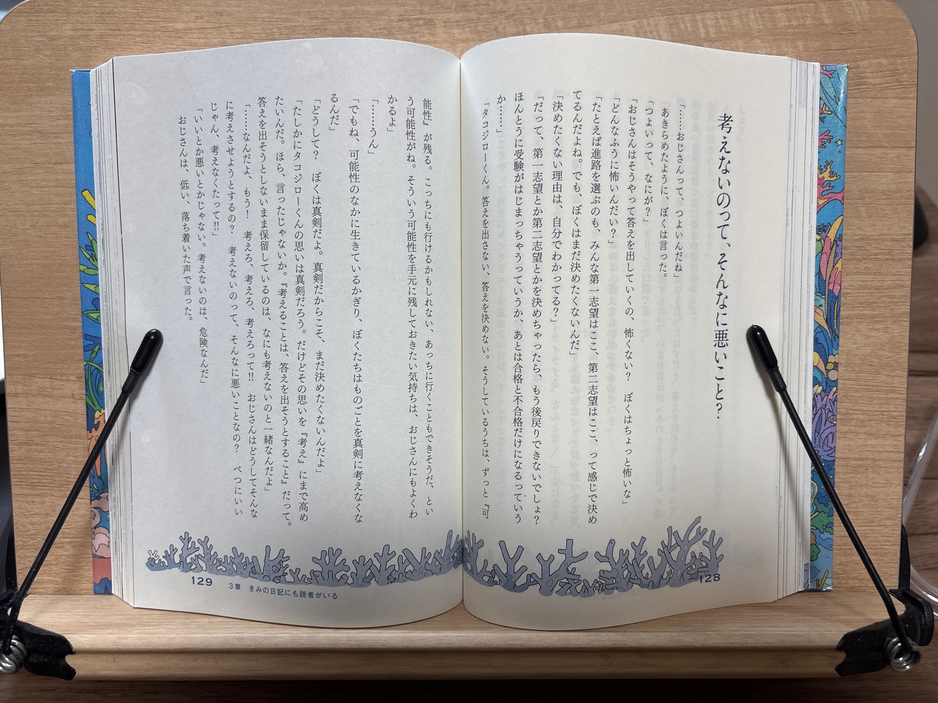 ちょこ@chocorate2026年3月8日読み終わった🖊️ たぶんXでみかけて、題名に惹かれて読みたくなった。 内容わからないままに借りたら、児童書だった。 🫧🫧🫧🫧🫧🐙🪸紹介文🐚🪼🫧🫧🫧🫧🫧 他者より先に、自分との人間関係を築くための本 『嫌われる勇気』古賀史健が、 はじめて13歳に向けて書き下ろした 「自分を好きになる」書き方の寓話 🫧🫧🫧🫧🫧🫧🫧🫧🫧🫧🫧🫧🫧🫧🫧🫧 借りてきた当初、なんだ〜子ども向けじゃぁん.."良いこと"は書いてありそうだけど...なんか今の気分じゃないかもぉ...と置いといてたんだけど昨日の夜から読み直して一晩〜朝いっきよみ🐙🐚 とにかくイラストが可愛い。飽きない紙面! 当初は、あるあるな中学生のお悩みをポエミーなかんじで包んだお綺麗お話...?と偏見まるだしで読んでたけど、普通にめちゃ良かった。笑 子ども向けだとしても大人にもためになる!! ひとりで、日記をかくことで自分のなかで出来事の振り返りや考えの整理ができるし、未来の自分への贈りものとなる。 日記、昔から全然続かないけど、息子を出産してからおやこ日記という3年日記をかいててそれは続いてる!3年目。基本子育て日記だけど、普通にその時の自分の悩みとかもかいてて確かに面白い。それはかなりスペースがかぎられたものだから(だからなんとか続いてるんだけど)もうすこしちゃんとした日記もつけてみようかな〜。毎日って決めすぎなくてもいいんだよね〜 🖊️ 日記をかくときの、考えるときの、ヒントたち 🫧「思う」と「言う」には距離がある 🫧考えるとは「答え」を出そうとすること 🫧ぼくたちは「消しゴム」を持っている 🫧その作文、嘘が混ざってない? 🫧出来事でなく「かんがえたこと」を書く 🫧自分の気持ちをスケッチする 🫧全体よりも細部を見つめる 🫧「あのときの自分」に質問してみる 🫧ことばの色鉛筆を増やす 🫧世界をスローモーションで眺める 🫧これはなにに似ているか? 🫧自分だけのテーマを掘り起こす 🫧悩み事は「心配ごと」と「考えごと」の2つに分ける 🫧「ぼく」を「だれか」にしてみる 🫧「書くもの」だった日記が「読むもの」になる 🫧すべては忘れてから始まる 🐙 読み終わってからカワスイ散歩してきた