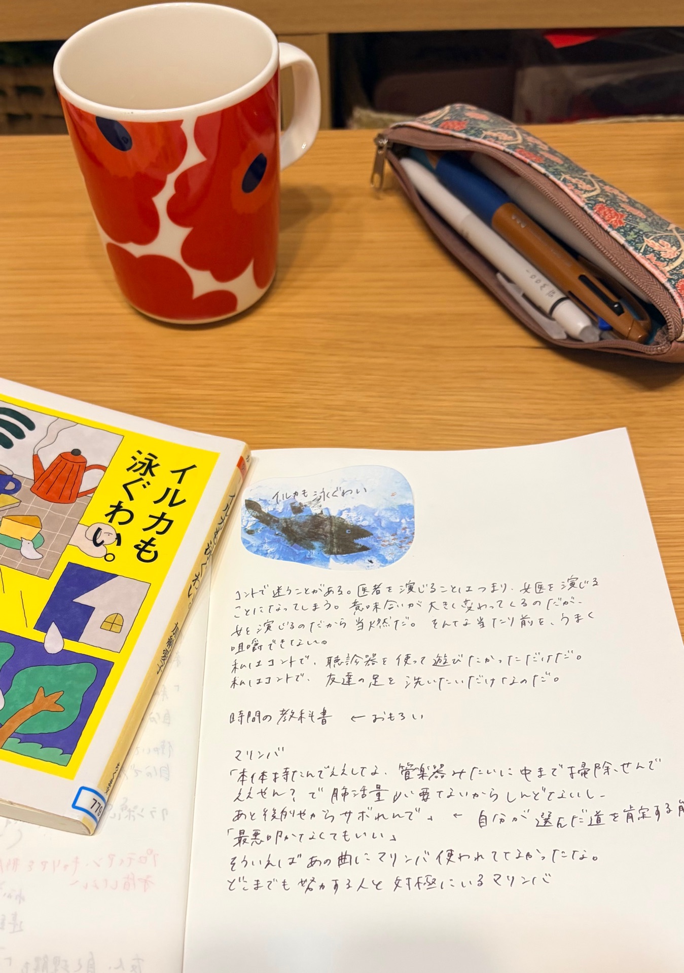 みっつー@32CH_books2026年2月6日読み終わった暇は日常で起こっているあらゆる事柄をぼんやりとさせるパワーを持っている。 例えば、小学生の頃、4時間目終わりの放課後、永遠かと思われた夏休み、習いごとに行くまでの空き時間。 しっかりと思い出そうとすれば思い出せるかもしれないけれど、ドッチボールをみんなでやったんだか、プールに行ったんだかどうか、一旦家に帰って録画していたアニメでも見ていたのか、どうも、ぼんやりとした記憶しか残っていない。 反対に、嫌なことはめちゃくちゃ覚えている。 学芸会でワンテンポ遅れダンスをお披露目したとき、塾でおしゃべりし過ぎて先生にブチ切れされたとき、給食の八宝菜のことを気持ち悪いと感じていたとき、などなど嫌なことはすぐに思い出せる。 でも、その嫌なことを、僕は「忙しかった」と言い換えたい。頭の中の動きとかも含めて。ダンスの練習、休憩がてら外にでて外のぬるい秋の空気を感じながらみんながフィードバックしているところをぼーっと眺めていたところとか、塾ではその前から喋ってた人たちがいたのに、たまたま自分たちが喋り始めたタイミングで怒られたことを不当に感じていたり、八宝菜のドロドロしたところや、茹でられ過ぎた黄身がボソボソしていたり、頭の中が忙しなかった。 ある種のゆとりは、余計なことを考えなくていいから、とても楽だ。 しかし、今の自分はYouTubeでゲーム実況をやりたくて、本をたくさん読んで学びたいことがたくさんあって、それを言葉に換えて誰かに届けたいと思っていて、多分、忙しくしていないと、ぼんやりとした記憶を掴み取ることができない。 そうしてやるべき事が全て終わったあとに、外に出て見る世界は普段とは全く違う見え方になっている、気がする。 眩しくも優しく照らす太陽、小鳥のさえざり、風に吹かれた木々の葉と枝が擦れる音、遠くの方では茶色のハンチング帽を被ったおじいちゃんが薪を割っている音がしていた。おれはどこに住んでいるんだ。 ふざけてしまったが、実際、忙しく、仕事をやり遂げた後に、絶大なる多幸感を感じた経験は誰にでもあるのではないだろうか。 もちろん、休むことも大事だ、休めるに越したことはない。 けれど、僕は本当に甘ったれた日常を送ってきているため、今こうやって、忙しく、熱中して、自分のやりたいことに熱中できていることが、何よりも嬉しい。 実写版の『ちはやふる』を見てから、僕の中で「努力コンプレックス」というものを感じるようになった。 「僕は努力をしたことがない」 その事実が、どんなに恥ずかしくて、不名誉で、もったいないことだということに、薄々は感じていたけれど、やっぱり悔しかった。 多忙からの、多幸。 今の僕は、これを大事に生きている。 Aマッソ・加納愛子さんの『イルカも泳ぐわい。』という本を読んだ。 お笑い芸人さんのエッセイがとても好きだ。ピース又吉さん、オアシズの光浦さん、ピン芸人のヒコロヒーさんのエッセイを今まで読んできたけれど、他の方はそれなりにネタ番組や、バラエティ番組で見てきたけれど、Aマッソに関してはこれまであまり見てこなかったという点がある。 Aマッソがテレビに出てないというわけではなく、僕は基本的に同じ番組をずっとぐるぐるしているため、自分が見ている番組やYouTubeに登場する機会があまり多くないと言えるコンビと認識していた(例えば嵐の番組にはよくノブコブの吉村さんや、ハリセンボンがよく出てるなぁと言われれば伝わる人もいるかもしれない)。 強いてAマッソで知っていることと言えば、紙媒体のネタと、さまぁ〜ずチャンネルに出てたなぁということと、エッセイの著者である加納さんの相方のお名前が「むらきゃみ」であることである。決して小悪魔ageha出身のギャルタレントではない、でも「むらきゃみ」なのだ。ゆうちゃみ、みりちゃむ、むらきゃみ、ではないのだ。 ただ、先に書いた「紙媒体のネタ」が相当にクセの強いネタであるからにして、結構小難しいネタを書く人なのかなぁ?と思い、エッセイをパラパラと捲っていった。 お!? おおお!? おーーーー!! みたいなエッセイだった。 なるほど、やはりちゃんとクセの部分もたくさんある、クセというか、哲学とお笑いが同時に生息しているような不思議な文体だと感じた。 しょうもないことが気になったり、勝手に頭の中で駆け引きしていたり、突然ファンタジーが盛り込まれていたり、加納さんの頭の中が忙しい。 その思考を覗き見させてもらっているというか、加納さんこ頭の中をパカっと開けたら、チャリンコや、映画のDVDや、サンパチマイクや、拳銃や、弥勒菩薩が刺さってましたみたいな、ガチャガチャとした脳が出てきそうなまである。 その脳の間に唐突に、 極力努力したくない人の「自分が選んだ道を肯定する能力」というものを、私は初めて目の当たりにした。この子は、この先もきっと私より胸を張って生きていく、と