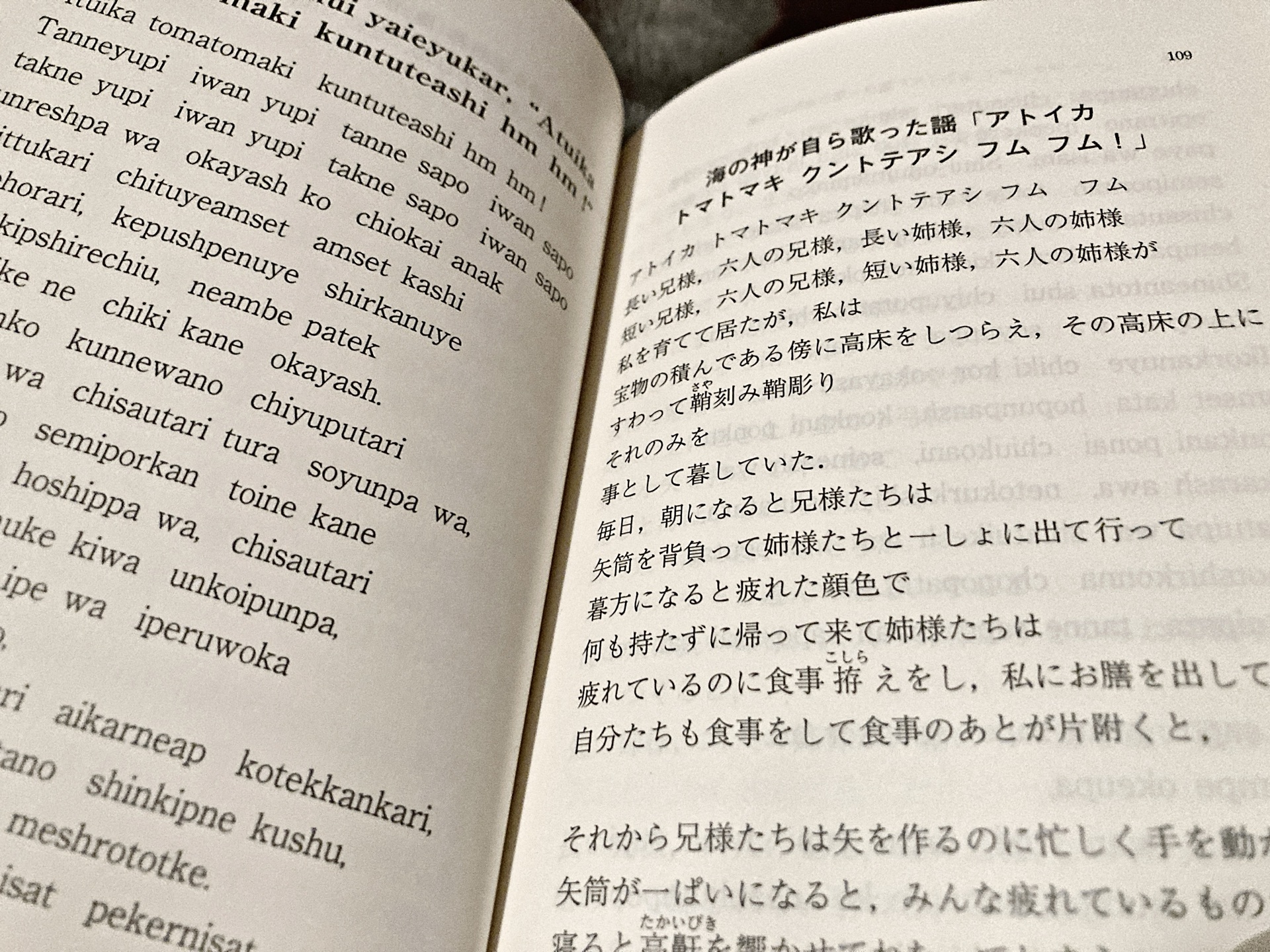 Rica@rica_bibliotheca2026年1月9日読み終わった大切な本よかったー!アイヌ自身が初めてアイヌ語で書いて刊行したという本書. 美しく残酷で力強く儚い. 何度も読み返したい __________ アイヌにおいては, 獣鳥虫魚介草木日月星辰みな神である(___というよりも, 神々が我々人間の目にふれる時に限り、かりにあのような姿をとって現れるという考え方である)。 __________