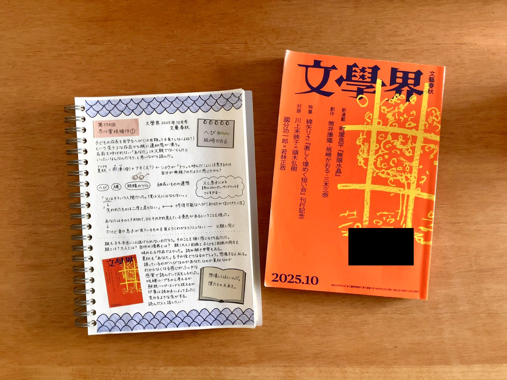 ぴぐ@pgmn2025年12月21日読み終わった坂崎かおる「へび」 幼稚園•小学生くらいの年齢の子どもと会話するとき(といっても現状そんな機会はあまりないが)、心なしかいつも身構え緊張する。おそらく相手は絶賛自分の世界を積み上げて構築している途中で、迂闊なことは言えないなと考えてしまうからだ。 作中では父と子の親子関係が描かれているが、ここでの父も、自分の中にある軸と子の世界との間で戸惑い、試行していたように思う。そうして親から子へ、子からその先へと続く思いやりと戒めを感じるような作品だと思った。 江﨑文武 音のとびらを開けて 第27回 文學界を手に取るときは必ず読む江﨑さんのエッセイ。江﨑さんの周りで繋がっているご縁やその歴史を垣間見ることができ、いつも楽しい。