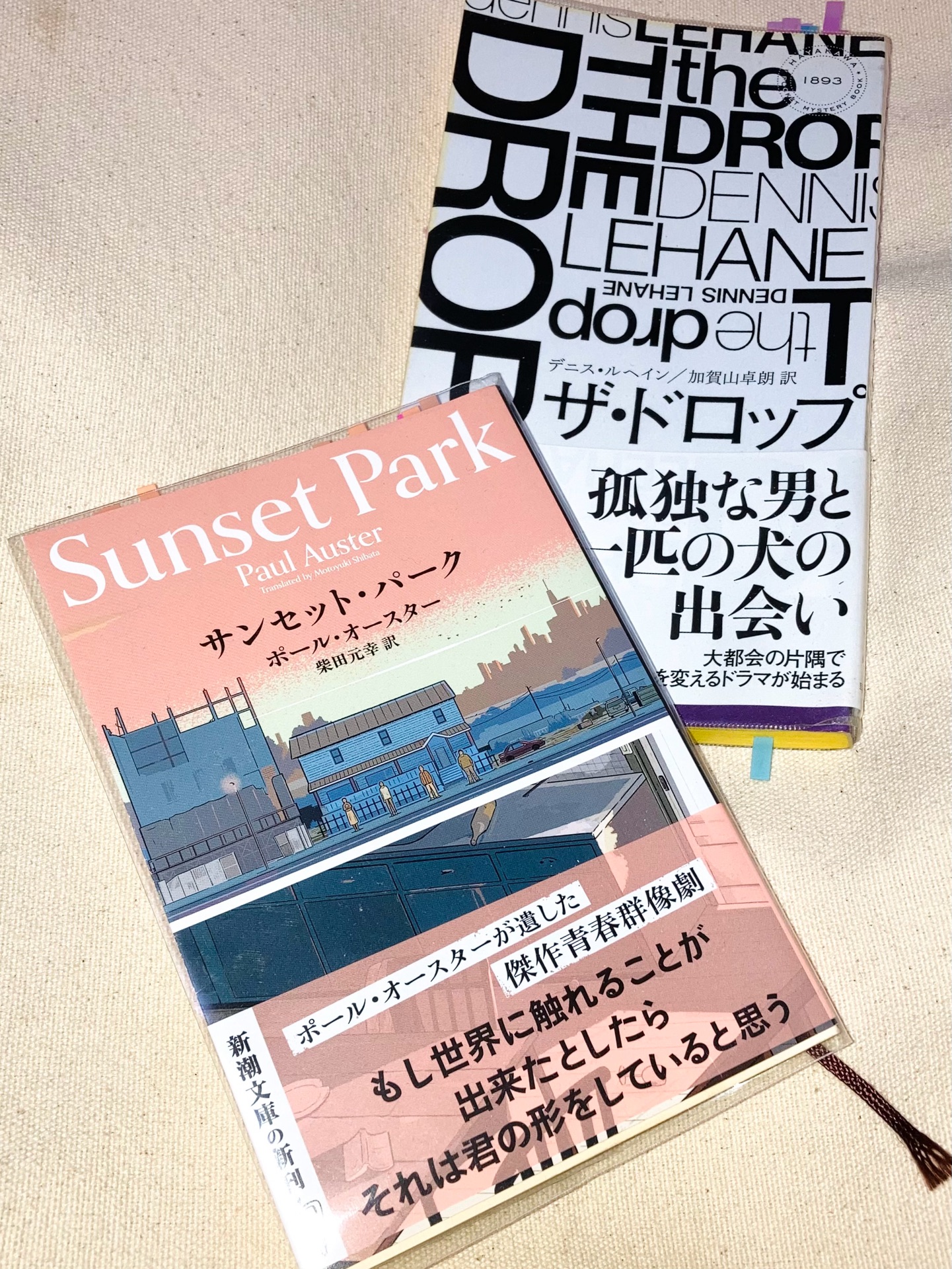DN/HP@DN_HP2026年1月19日ポール・オースターの『サンセット・パーク』を文庫で再読したら、これも先日何度目かの再読をしたデニス・ルヘインの『ザ・ドロップ』に近い印象というか、同じものを描いている、と思ってみたくなった。罪を背負って世界に背を向けた男と、彼が出会う「赦し」や「救い」あるいは「希望」を感じさせてくれる女性(『ザ・ドロップ』では犬も)。彼の周りのそれぞれがそれぞれの人生を「解決」しようともがいている人々。それでも、どうしようもなくままならない世界の話。