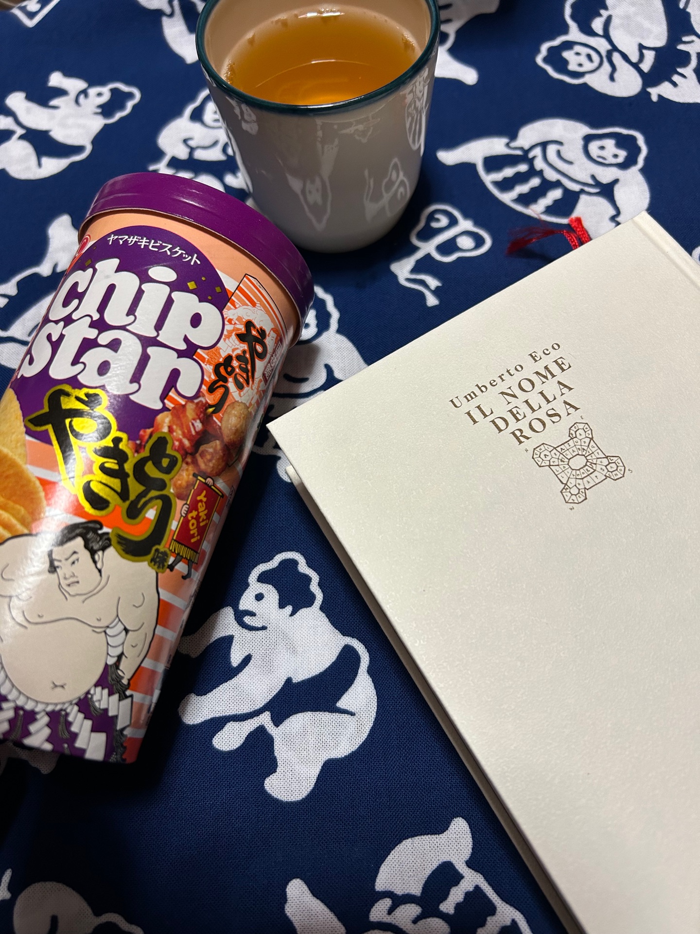 群青@mikanyama2025年12月27日買ったちょっと開いた@ 自宅下巻の、エーコ自身による「薔薇の名前 覚書」と、訳者 河島英明氏による「旧版解説(1990年記)」、河島思朗氏「薔薇の名前 完全版 刊行にあたって(2025年)」を読む。 先日、両国駅のNewDays(JR東日本のコンビニ)で、国技館やきとり味のチップスターを見つけちゃった。国技館 名物のやきとりは、地下の工場で焼いているのよね。最近は国技館以外でも買える。東京駅の駅弁売場とかで。![薔薇の名前[完全版] 下](https://d2vswqi5nxcpat.cloudfront.net/post-images/3937465e-3dc5-4d39-be69-ff2505282f29.jpg)