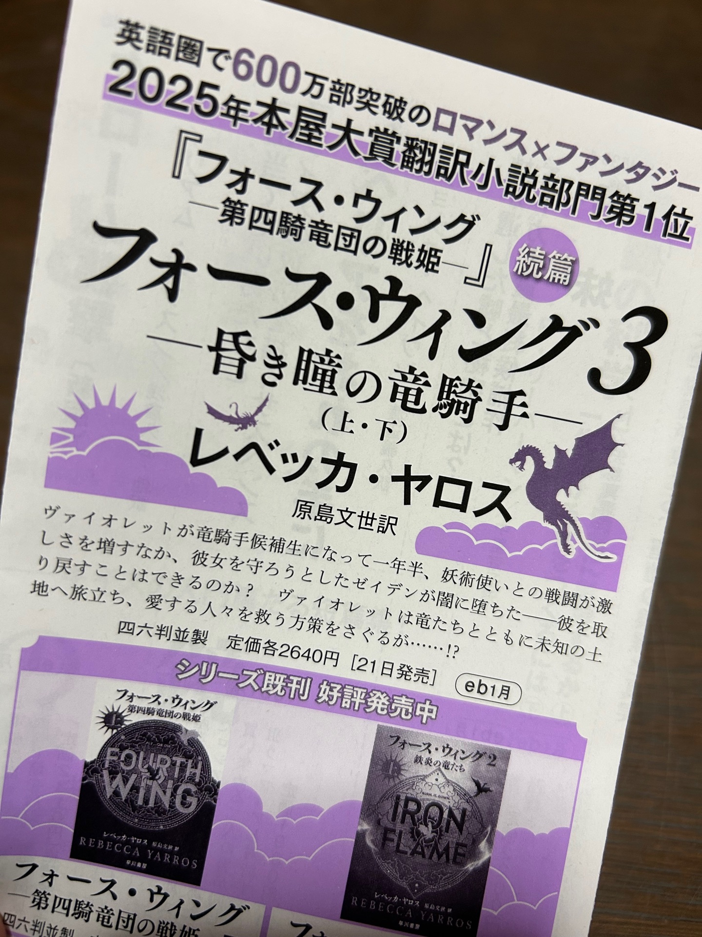 上下巻買ってきました。来週フォースウィングを読むための有給を取ってるので少しの間あたためます。早く読みたい!