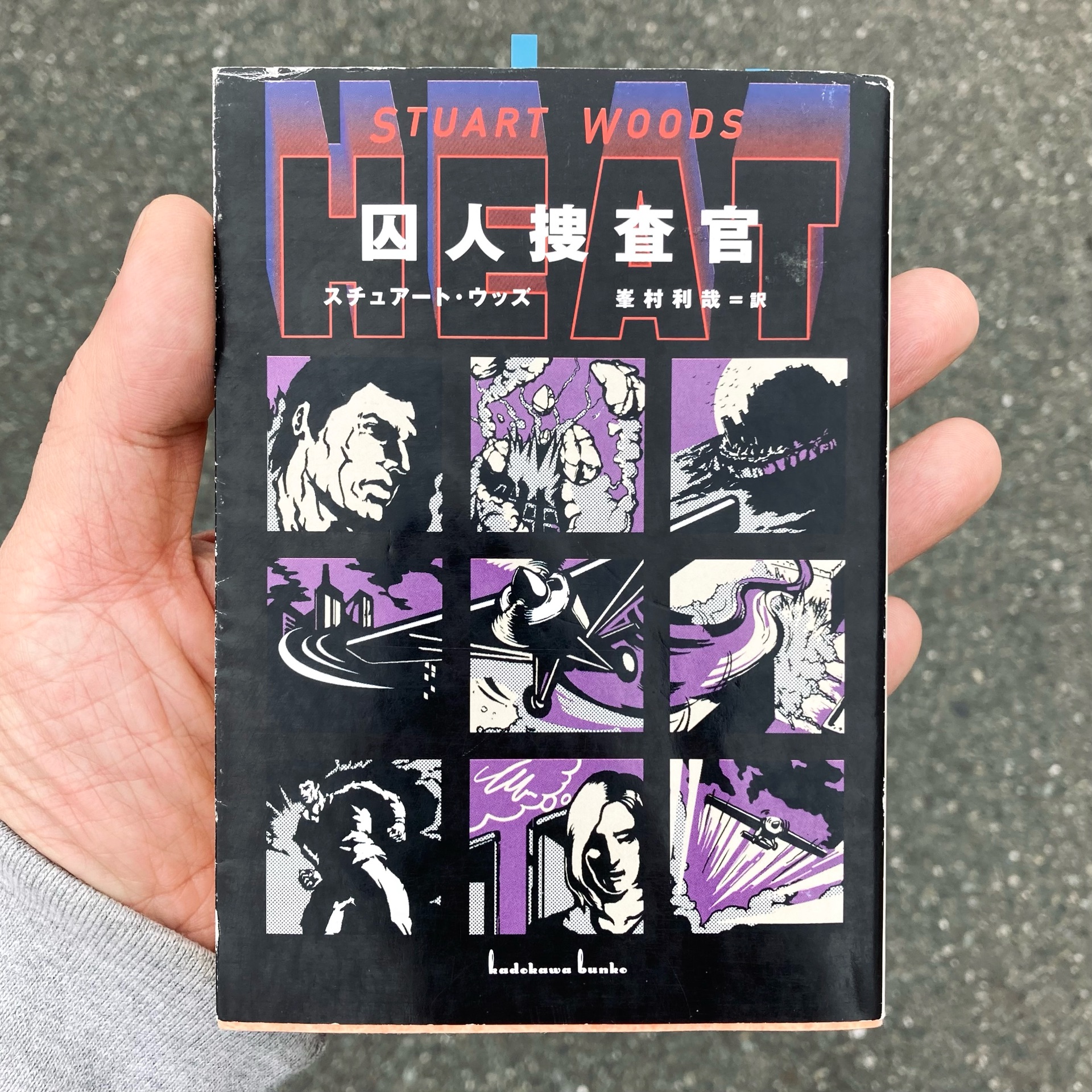 さて、この本はアートワークに惹かれて買ったのだけど——アートワークに惹かれて買った、いわゆるジャケ買いした本を読む、というのも「適当な」シュチュエーションだ——、こういうアメコミぽいアートワーク好きなんだよな。同じ角川文庫の寺田克也さんのアートワークを使ったランズデールとも共通したものがある、と考えると、出版年も近いしきっとこれは同じ編集者の仕事に違いない、とか想像するのも楽しい。