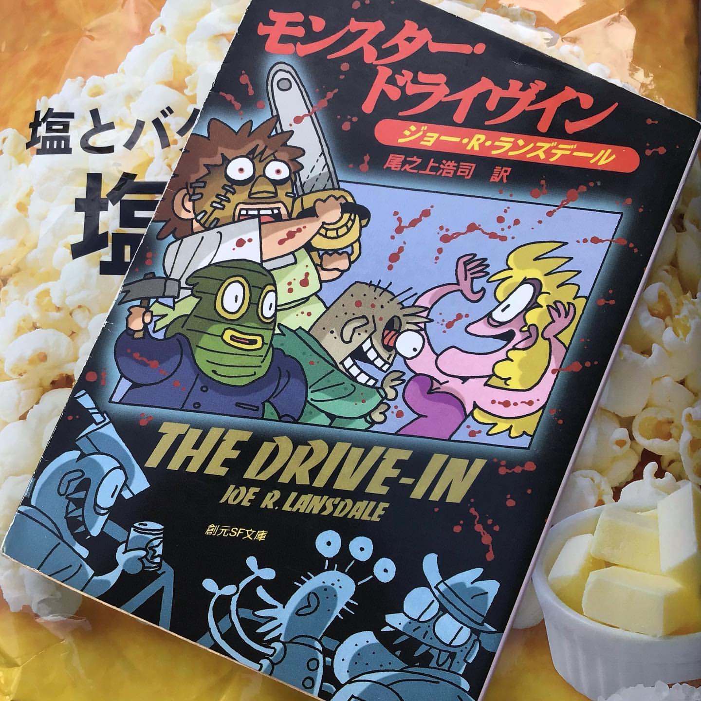ポップコーン・ノヴェル、という呼び名はさっき思いついたから多分存在しないと思うけど、ポップコーンでも食べながら、ちょっと本が汚れるのも気にせずに気楽に良い意味で読み捨てられるように読みたい、そんな気分のときに手に取ったランズデールのこの小説も、カバーアートやタイトルから受けたキャッチーな印象のその下では、そんな極限状態での人間の思い振る舞いが、なかなかシリアスに、かなりグロテスクに書き出されているのだった。