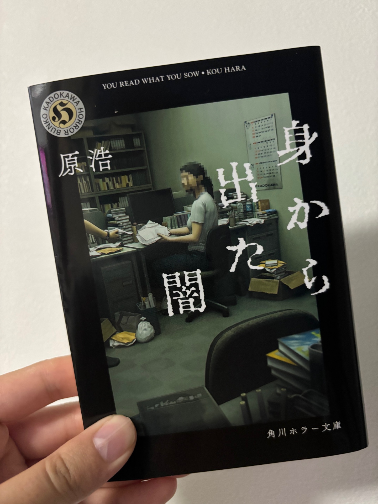 身から出た闇原浩読み終わった昼下がりのカフェは人で賑わいを見せている。 横並びのカウンター席のひとつで、ブレンドコーヒーを飲みながら、足を組み、かっこつけて(かっこよくないけど)いる男がいた。 僕である。 もともとカフェで本を読むのが好きだ。 なんかカフェで本を読んでいるだけでカッコいい度合いが4割り増しくらいになるような気がする。 あと、家だと本当に落ち着かない。 家そのものが娯楽と言ってもいいほどに、僕は家が好きだ。 家にいるとゲームだったり、動画編集であったり、未だに消化しきれていないお正月特番に目移りしてしまうため、集中して読書をするのにはカフェはお誂え向きな場所である。 しかし、今回は違う。 いくら側から見て僕がかっこよかった(よくない)としても、今回ばかりはいつもとワケが違うのだ。 原浩さんの『身から出た闇』という本を読んだ。 この本はSNSや、橋、エレベーターなど、生活のすぐ側にある恐怖を描いた短編集である。 ホラーというジャンルに、僕はほとんど触れてこなかった。というか避けてきた。 ホラー映画なら割と見てるかも知れない。 呪怨とか、着信アリとか、そこらへんの有名なやつは多少。相葉ちゃんのやつも見た。あれは怖くなかった。ドキドキよりもベトベトの方が勝ってた。 けれど、ゲーム実況という活動をしているのにも関わらず、ホラーゲームはほとんどやったことがないし、ホラー小説なんてものは特に一人で臨むものである。 そうなのだ。 映画だって、ゲームだって、誰かと一緒に堪能することができるじゃないですか。 それに比べてホラー小説はけしからん。実にけしからんぞ。 基本ソロプレイじゃないか小説さんはヨォ。 誰かと楽しみたければ音読しろってか?いるか?そんなやつ。ホラー小説音読って怪談師になるための練習かなにかなのか?稲川淳二になるための訓練なのか? ホラー小説に対する感情が怒りへとシフトしてきたので、ここで一旦冷静になりたいと思う。 ふー。 よし。 そんなわけで、読み始めたワケですよ。 『身から出た闇』。 まず角川ホラー文庫の装丁ね。 なんで縁が黒いんだよ。ふざけるな。 そんでなんだこれ、どこかのオフィスなのかな。 その中心に女性がいます。 でも顔にモザイクがかかってます。 絵なのに。 なんでだよ。 絵なのに、肖像権あんのかこの女性。 あと、タイトルがガビガビ過ぎだ。 どうやったら生まれるんだよこのフォント。 一回書いた後に歯医者さんのドリルとかで削ってんのか?歯医者ドリルフォントなのか? 先ほども書いたように、この小説では身近に潜む恐怖を題材にしていて、しかもご丁寧にそのお話をどのように書き進めて行くのか、という会議まで載せてくれている。 ただ、読み進めて行く内に、この会議自体にも暗雲が立ち込め始める。 なにこの小説、抜け目ないんですけど〜(おぱんちゅうさぎ風)。 エレベーターとかって怖い話聞く前から怖いじゃないですか。 狭いし、薄暗いし、機械音声の女の人が喋ってるし、なんか上がったり下がったりするし。 橋って怖いじゃないですか。 なんか渡れるし、下に水が流れてるし、グラグラ揺れると恋とか始まるし。 ただ読み進めて行くと、この『身から出た闇』は思っていた以上に、真相解明パートにかなり魅力があるということに気づき始める。 さっきも書いた通り、そこまでホラー小説を読んだことがないので、他のタイトルでもそうなのかは分からないけれど、もっとただただ怖い展開が続くジェットコースター的なジャンルかと思っていたのだけれど、蓋を開けてみれば、リアル脱出ゲーム的、というか、明らかになった瞬間が一番ゾッとする、と言った形式になっていて、エンタメとして、そこが面白かった。 初めてに近いホラー小説体験だったのだけれど、この本は自分の中でもちょうどの怖さだったように思うので、また次なる表現力向上の旅…また次なるホラー小説への旅…を続けるために、次の作品を追っていきたいと思います。 なんかおすすめのホラー小説があったら教えてください。 あと、結局カフェで読みきれなくて自宅で読み終えました。 家が怖い、好きなのに、寝れるかしら今日。