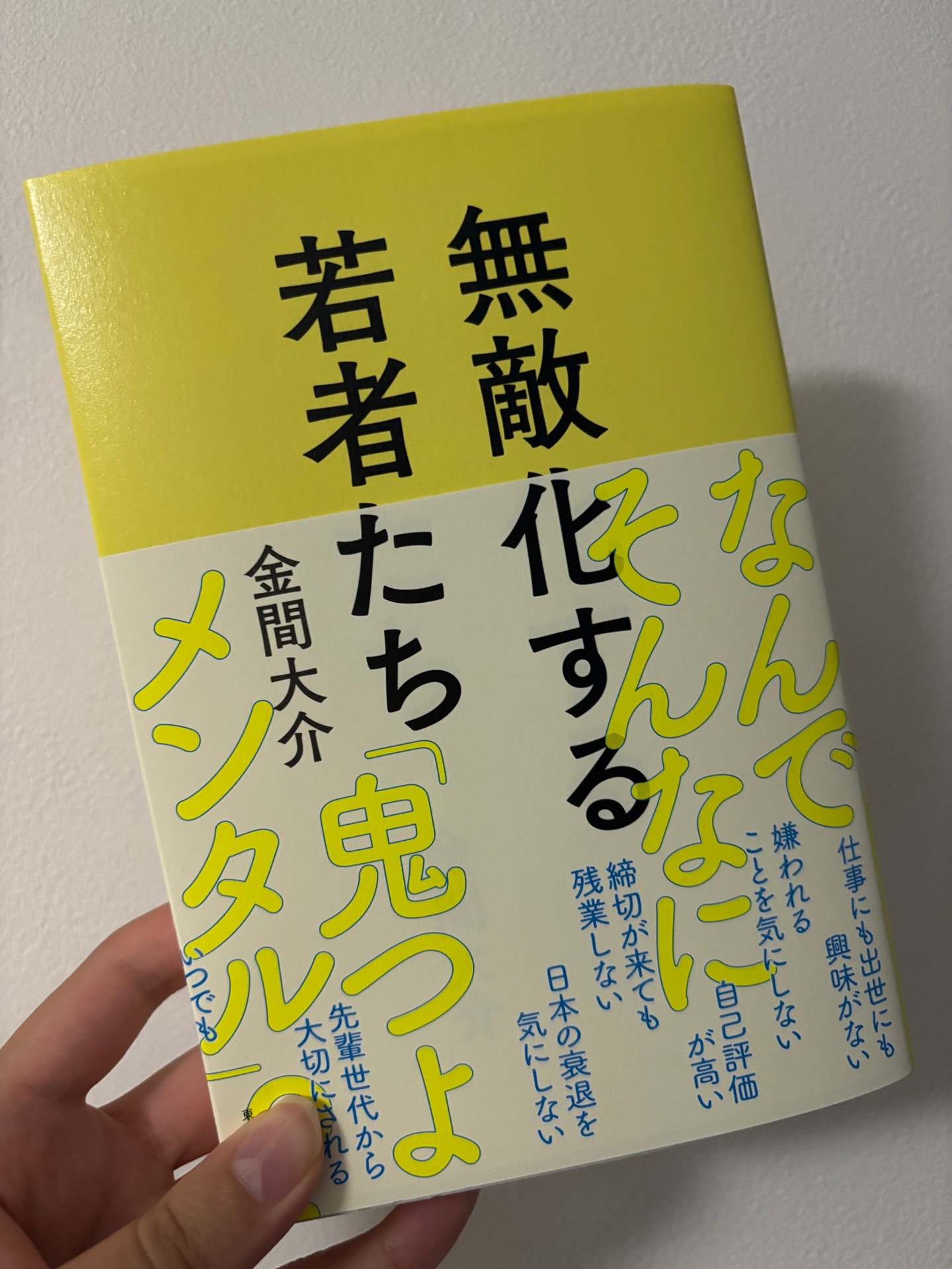 無敵化する若者たち金間大介読み終わった比較的若者だけれど、若者だと胸を張って言えない年齢になってきた。 職場では、おじさん客への愚痴を言いながら、大学生くらいの同僚には「へへっおじさんには分かんねぇや」と言ってしまうようなターンに入ってきている。 なので、このタイミングで僕は「おじさん」についても、「若者」についても学ばなくてはいけないのかもしれないと気づいた。 そこで購入したのが金間大介さんの『無敵化する若者たち』だ。 この本の中で言われている「無敵化」というのはニュースなどで取り上げられる「無敵の人(守るべきものなどがないことから犯罪行為などを行ってしまう人のこと)」ではなく(以下引用) 若いというだけで勝ち組と思えるような恵まれた環境が与えられ、自己評価が高く、かつその権利主張をしっかりするような存在を指す。 『無敵化する若者たち』p.15 のことを言っている。 この本を読んでいて興味深かったのが、現在の若者たちは自己評価自体は高いということだ。 「興味深い」と書いたけれど、それは意外だった、ということではなくて「やっぱりそうなのか!」という納得感からくるものである。 確かに周りの同僚たちは、立場的にはフリーターであったり、学生だったりが多いのだけれど、やりたくない事に対してはハッキリと「NO」を発するし、自分が持っているスキルを存分に発揮(友人にVtuber用のイラストを描いてる人や、パソコンを1から組み立てることができる人もいる)しているし、一番感じるのは休むことに抵抗が全く無いように思う。 最後のに関してはモヤっとするけれど、まぁ体調不良だもんなぁ…と思うしかない。 自分の場合は、もし体調不良になって職場を休むということになると結構な緊張感が襲うので凛とした態度で「今日休みます、すみません」的なLINEがくると「おぉ…」と面食らってしまう。いや、仕方ないけどね?悪いんだもん、体調。 でも、ついこないだすげぇハードそうなスケジュールこなしてたよね…うん、そりゃ…疲れるよね…うん。と、なっている。 でも本を読んでいると、こういった若者たちのベースとしては大きな「諦念」が含まれているということも分かった。 「今よりもいい世の中を、いい社会を作ろう!」という考えが、そもそも現在の若者には無いらしい。 わ!それは確かにおれも思っちゃってる! ニュースや、ネットを見ていると、明るい話題なんてものはほとんどないに等しい。 むしろ明るい話題をしているつもりなのか知らないけれど、ネットで見かける政治的な発言をするユーザーは「日本人このままだとヤバい!」とか「誰々に任せといたら日本終わる!」みたいな言説が目立ち「なんでそんなに煽り口調なの?」と思うことが多い。 本当にヤバい事柄こそ丁寧に伝えるべきなのではないだろうか。 誰かの思考を排除した上で自論を語るのは、ただの押し付けでしかないのではないだろうか? と、思ってしまう。 話がズレたけれど、昨今の世の中に対する不満や、ヘイトをネットで眺めていると、やはり「諦念」を世の中に感じてしまうのは分かるような気がする。 それでも若者の自己評価が高いというのはどういうことか。 つまり、「自分たちはもっとやれますけど、やらないっす」ということらしい。 意外にも、若者たちはスキルアップや、勉強自体はとてと意欲的に望むとのことだ。 皆すごい、おれ勉強嫌いだもん(今は割と好き)。 ファスト教養(すぐに身につけることができるスキルなど)で知識を手にして、就活への臨み方(攻略法)なども熟知しているというのが現在の若者だ。 けれど、働き始めると、やりたいことがあるわけでもないし、自ら成長しにいこうとするわけでもない。 どうせ頑張っていても「日本社会が良くなることはない」と思っている人は若者だけでなく沢山いることだろう。 その考えが染みつきまくっている若者は結果として「やれるけど、やらない」がベースの考えとなってしまっているとのことだ。 ただ、彼らの、若者たちのそう言った考え方が「悪」なのかと言われればその限りではない。 こういった若者たちが誕生してしまったことには、今の大人たちの育て方にも原因の一端があると言ってもいい。 「モンスターペアレント」という言葉がこの世に爆誕してきてからかなりの時間を経たが、大人たちは子どもたちを過保護に育て、自分の子どもが間違ったことをしないように必死になって正解を教え続ける。 その教え込まれた正解、正解、正解が積み重なって、子どもたちは「選択」する体験をすることなく大人に片足を突っ込むことになるのだ。 これも大人たちを否定したい訳ではなく、これだけ過保護にやっていれば、熱意がなく、上昇志向もなく、自分から動いてくれない、子どもができあがってしまっても文句言えないっすよね?ということである。 他の詳しいことは、本を読んで頂くとして、最後に僕の話をさせてもらいます。 僕は現在、ゲ