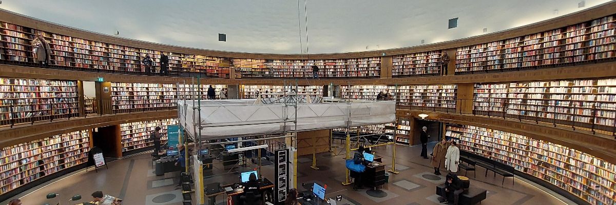 画像はストックホルムの図書館です。旅先の図書館に行くのが好き。日本の漫画もありました