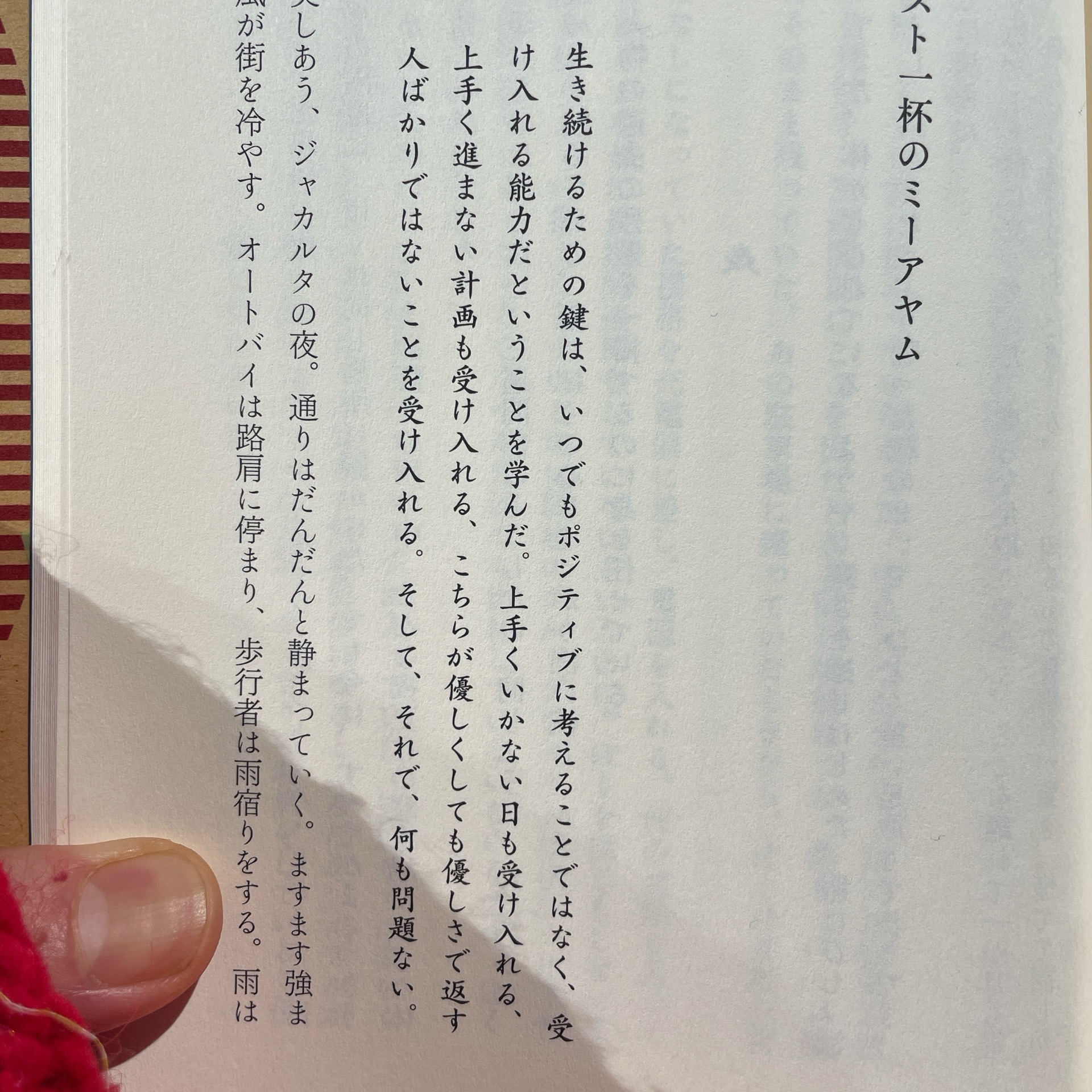 どうせ死ぬなら、最後にミーアヤムブリアン・クリスナ,西野恵子読み終わったまたいつか心に残る一節アレという1人の巨漢の浅黒い37歳の男が、死ぬ前にミーアヤムを食べたいというところからの様々な人との出会いがユーモアでもありその中に散りばめられる言葉たち。 幸せを探し続けるよう強いられる世の中へと問い。 手帳にメモしたくなる心に刺さる言葉が沢山あり、去年インドネシアに行ったからか情景も思い浮かぶし、ジャワ島で出会っためちゃくちゃ美味しかったミーアヤムもまた食べたくなった🍲