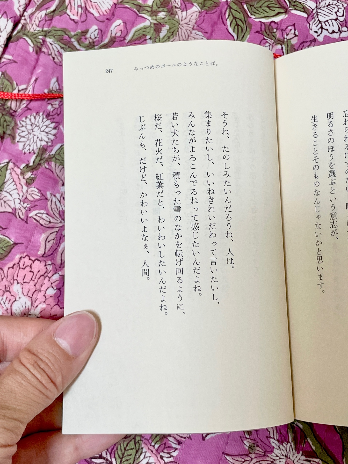 読み終わった🧶🐇🧤 鎌倉に遊びにいったとき あまい店ミニというお店に行った。 そこに置いてあった本。 その時編み物に興味があったこともあり、 題名と表紙を見てなんか気になった。 お店にあったのはサイン入りの文庫本。 一瞬買うか迷って、その時は買わずに読みたい本リストに加えて図書館で借りてみた。 編み物作家の三國万里子さん。 作品のことは全然知らずにこのエッセイを読んだのだけど。 かなり、好き...!!!! いままで読んだことあるエッセイのなかでもトップレベルにすき! なんだろう、この文章、感性?なににこんなに惹かれてるのか〜 なんか物のお迎えのしかたとかもすごくいい。 自分だけの特別な時計、指輪、ぬいぐるみ...素敵だな。 時系列がばらばらなのも良い。ゆらゆら。 編み物の話はほとんどでてこなくて、三國さん自身のさまざまな記憶のお話。🍎 こんな風に、いつまでも遊びごころをわすれず、かわいい感性を持ったままに歳をとっていきたいな〜 あまい店ミニは三國万里子さんの妹の料理家なかやましほさんのお店で、姉妹で展示をしたりすることもあるらしく、だから本も置いてあったみたい。このお店はたまたま一緒に鎌倉行った友達が行ってみたいって連れてきてくれたの。ありがとう、おかも〜!!! 図書館で借りたけど手に入れたいくらい、なんかよかった。 読みながらいいなと思ったとこに紙の切れ端でふせん入れてたら膨大な数になった。 せっかくだから次に鎌倉行った時にあまいみせで買おうかと♡ 編み物も、材料などそろえてちょっと練習したとこで放ってて、こんなのつくってみたいな〜って妄想だけは一丁前な状態だけど、今年中に絶対みにつけるぞ🧶🐇‼️ 📝 ○父 「わーーー、って叫びたくなる気持ちは、おれにもわかる」 ○魔法つかいごっこ ものにしても、人にしても、自分にその用意ができた時に、ようやぬ出会えるものではないかと思う。 🐇願い事をした。出会うべき人のところに、わたしを連れていってください、と。わたしと一緒に、なるべくたくさん外の世界を見ましょう、とも。 ○たけばば おわかり、リボンちゃん?🎀 ○人形遊び 毎晩寝るときに枕の横にずらりと遊び相手の人形たちを並べて、起きると所定の位置に戻す。 ○早退癖 の世界にはどうやら素晴らしいものがたくさんあるらしい。 この時期、わたしは「自分という生き物」になるために繭を作っていたのかもしれない。 自分が触れ始めた「良いものたち」、つまり本や音楽や映画を、もっとしっかり理解するために勉強する、ということだった。 稲垣足穂 一千一秒物語を繰り返し読む。 ○うさろうさん 「たたずまい」がよかった。ほかのぬいぐるみとは一線を画す何かを感じた。 「オマエは・・・・・ようやっとる!」 うさろう爺さんの見送り ○キャンプ 勤勉な大人たちは、われわれ子供以上に解放された気分を味わっていただろうと思う。 うまくいかないことが全部おもしろかった。 ○ままごと こびと のおはなし 🧶🐇🧤 - 2026年3月18日