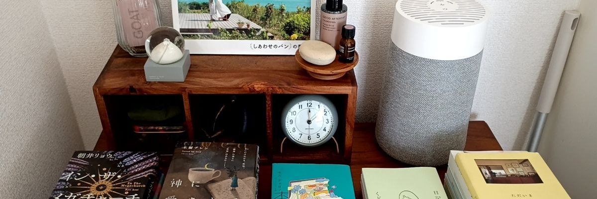 本を読むことと、本を買うことが好きです 出窓に文庫本を、食器棚の上に単行本を積んでます
