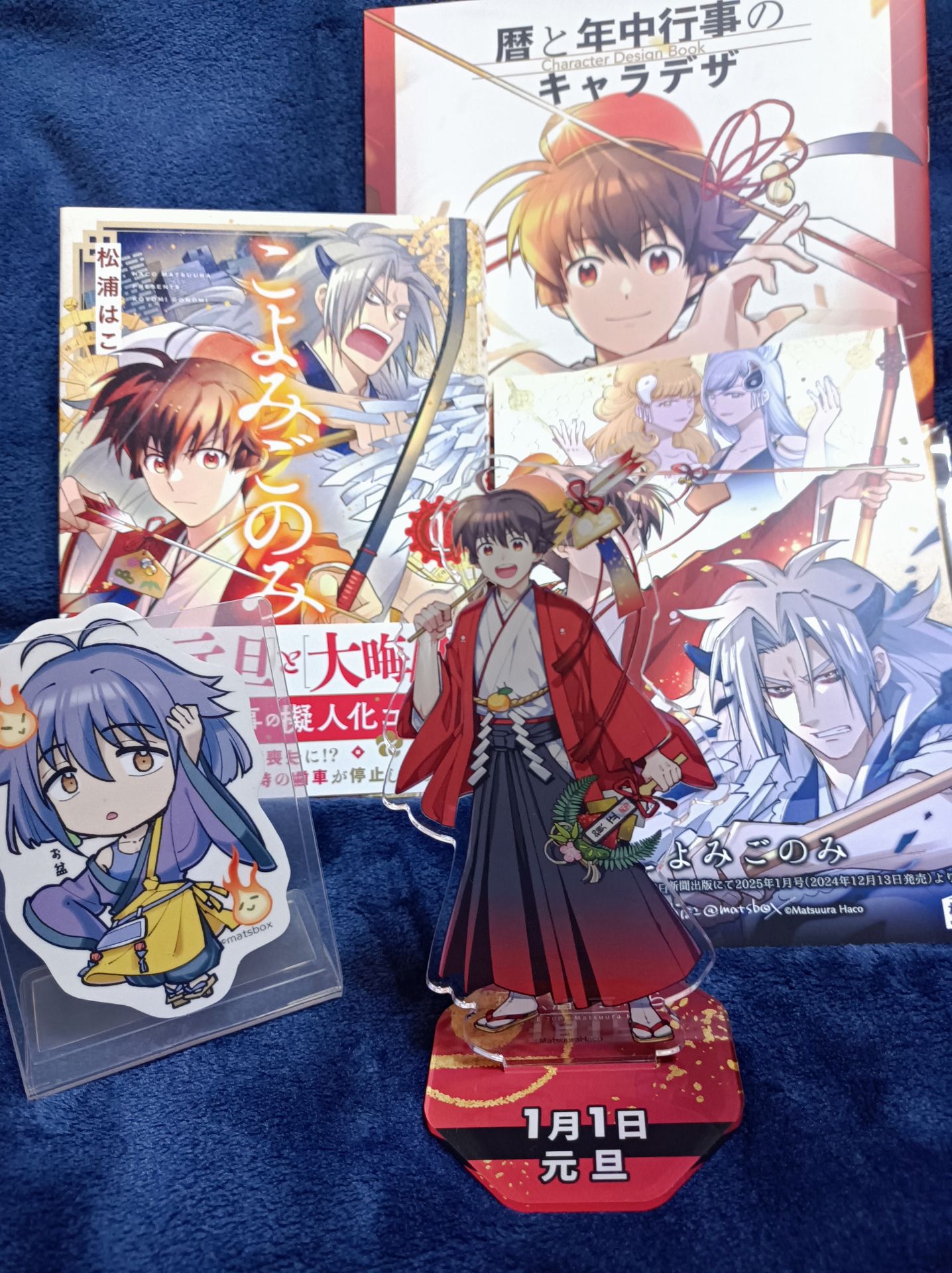こよみごのみ1松浦はこ読み終わった何度も読んだけどまた読んでる好き漫画商業誌掲載前から気になっていて、ちょろっと買っていたグッズと共に撮った写真をペタリ 某SNSをきっかけに知った作品です 暦に関する知識が散りばめられている作品ですが、ストーリー物としても読みやすくて楽しい 読んでいる内に自然とこよみに関する知識に触れられ、「あっ、そうなんだ?」との驚きを得られるのも有難い 1巻の今作では、年越し・節分・立春・花まつり・七夕・お盆と、半年の季節の流れを楽しめました すぐそばにある暦 知っているようで知らなかった様々な事に気付けた事に感謝しながら続刊も楽しみにしています 電子もあるけど紙派なので紙の本(コミックス)で続け〜🙏💫 雑誌掲載時はそんなに涙が浮かんだ気はなかったけど、コミックスで読み返すとじんわりと涙が滲んでばかりになるのはなんでだろうなぁ? 優しくて暖かい作品です