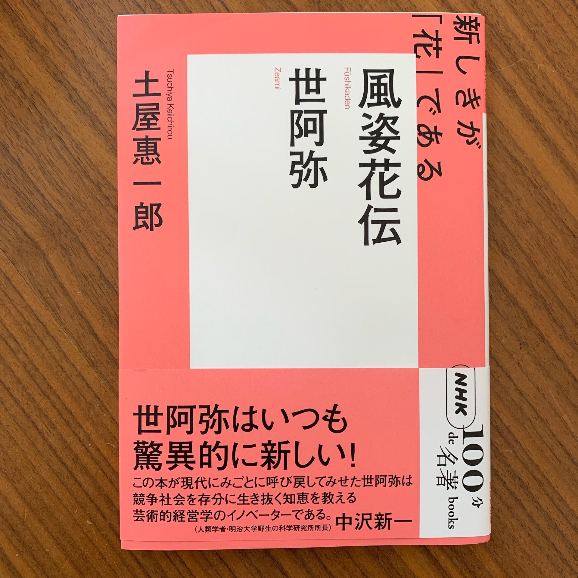 世阿弥風姿花伝土屋恵一郎読み終わった@ 自宅世阿弥が言う「初心」とは、今まで体験したことのない新しい事態に対応するときの方法、あるいは試練を乗り越えていくときの戦略や心構え。 「初心忘るべからず」とは、そのような試練の時に、自分で工夫して、それを乗り越えよう、あるいはその時の戦略を忘れずにいようということ。 世阿弥は、風姿花伝を始めとして、度々「初心」について述べているが、晩年60歳を過ぎた頃に書かれた『花鏡』の中で、まとまった考えを述べている。 その中で、世阿弥は「第一に『ぜひ初心忘るべからず』、第二に『時々の初心忘るべからず』。第三に『老後の初心忘るべからず』」の、3つの「初心」について語っている。 「離見の見」 自分の姿を左右前後から、よくよく見なければならない。これが「離見の見」「眼は前を見ていても、心は後ろにおいておけ」ということ、すなわち、自分を客観的に、外から見る努力が必要。 「住する所なきを、まず花と知るべし」 「住するところなき」とは、「そこに留まり続けることなく」という意味です。停滞することなく、変化すること。