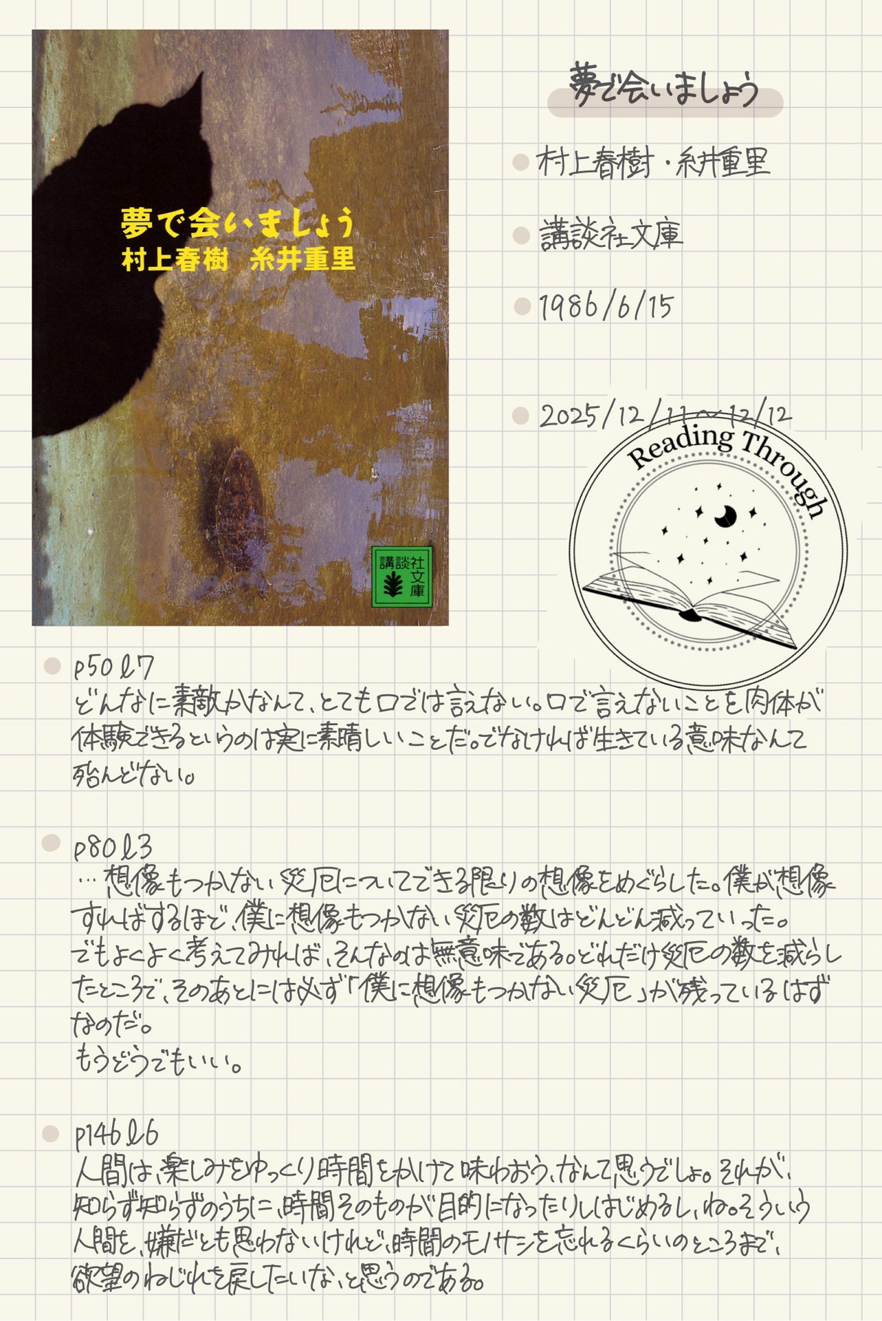 ノルウェイの森(下)村上春樹読み終わった - 2026年1月4日