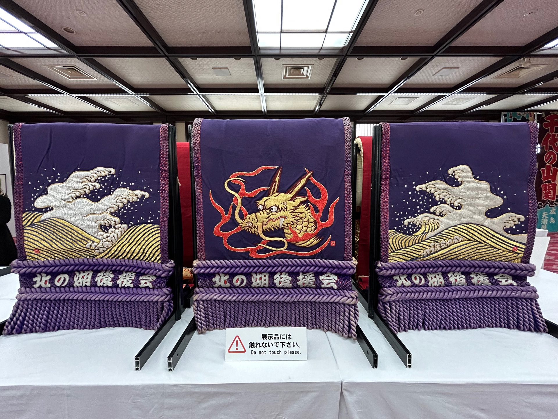 相撲とデザイントゥーヴァージンズ(編)気になるB5横/並製/208頁/オールカラー 4,950円 力士の化粧回しや染め抜き(場所入りで着る着物/幕内力士しか着用できない)のデザイン図案、力士の着用写真を掲載。 化粧回しの仕立て職人や着物の老舗企業の仕事現場を取材撮影。 令和8年初場所は1月10日(日)から。 両国の国技館には部屋&力士の幟(のぼり)が立ちました。 写真の化粧回しは北の湖のもの。 (日本相撲協会創立100周年記念展にて撮影) 強過ぎて憎らしいと言われた横綱だった。