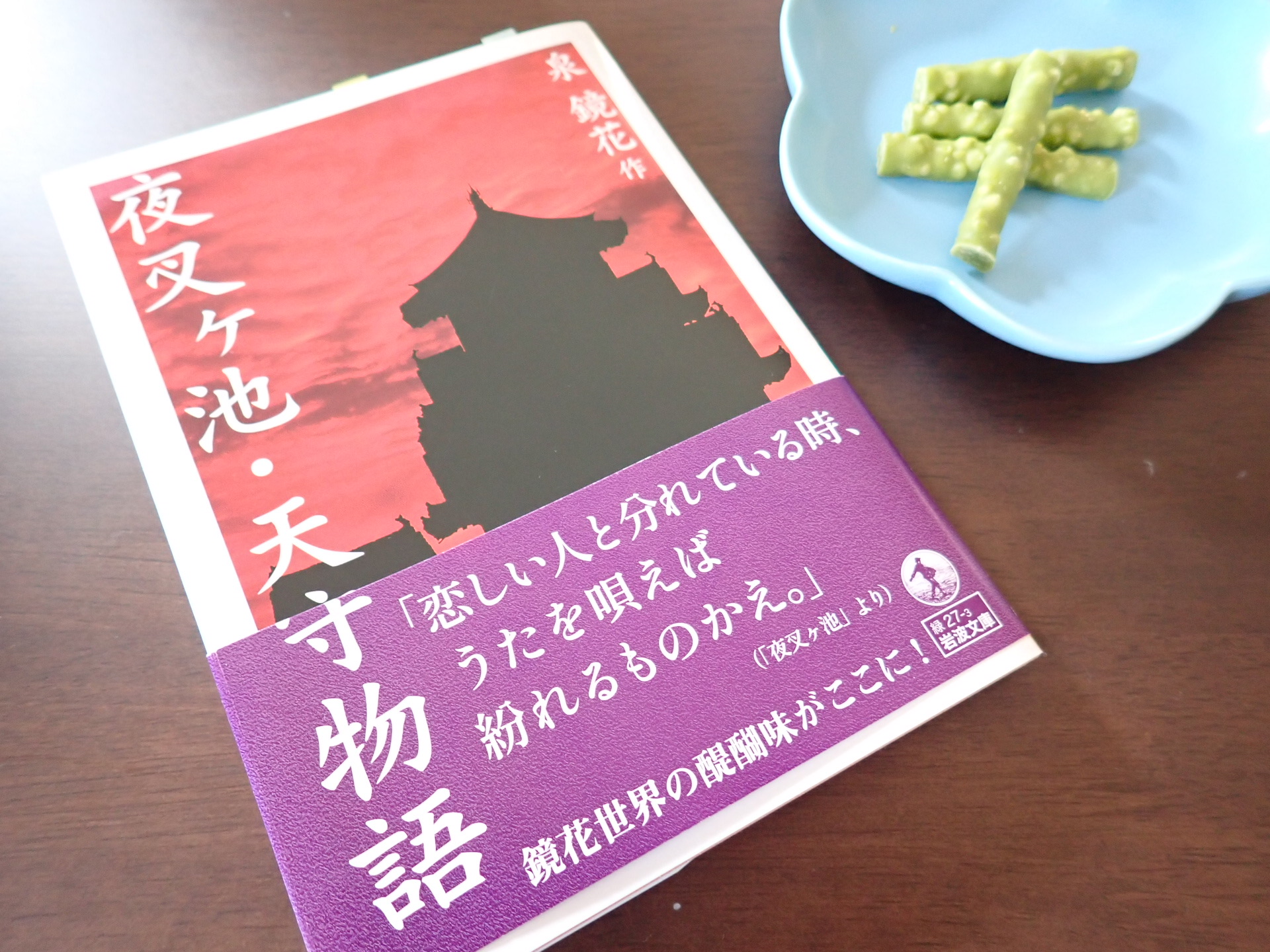 夜叉ヶ池・天守物語泉鏡花読み終わった『天守物語』、解説、ともに読了! 泉鏡花、好きだな〜〜〜!なんだかすごく惹かれる!恋するおなごが本当に好みだ〜〜〜! 人ならざるものたちの世界を覗き見るのが楽しすぎる。今年は古典を読むって決めてるけど、鏡花強化期間とか設けてあれこれ読みたいな〜! ところで写真右上の抹茶味の小枝、あまりにもワサビすぎる。もっとオシャレな写真になると思ってたのに。