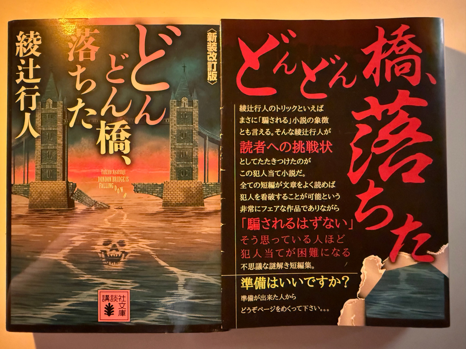 どんどん橋、落ちた〈新装改訂版〉綾辻行人買った読んでる綾辻先生から読者への挑戦状。 受けて立とうではないか。 スペシャルカバーがしっかり煽ってくる。いざ! 【途中追記】 これだめなやつだ。ニ編目まで読んだけれど、きつい。 どうしてこれを書いたんだろう。 おそらくこの調子で最後までいきそうな匂いが…。 一日一編ずつとりあえず読んでおくかという程度のものです。
