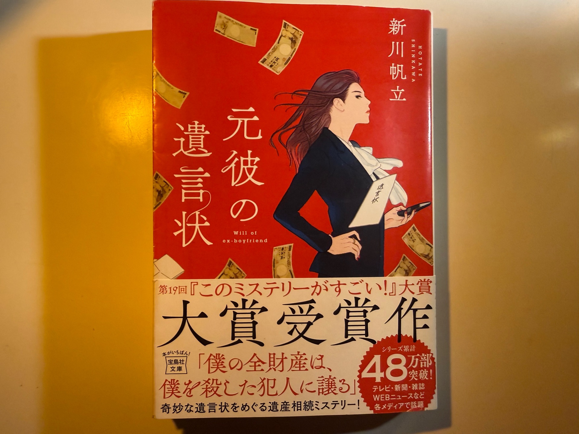 元彼の遺言状新川帆立読み終わった買った数年、本棚に差したままだった。 かなりライトな読み味でした。ドラマ化されたようですが、逆にこちらがドラマのストーリーをそのまま小説化したような印象。 登場人物たちに関する肉付けが甘いのと矛盾が多い。 デビュー作ということですが、使い回しの文章感が拭いきれず、推理小説を書くにあたってデータをもとにこう書けば間違いないでしょうという中途半端なコンサル的発想で作品を作っているのかとすら感じてしまった。 ストーリー、文章、どちらにも呼吸やうねりがない。 残念ながら、私には期待していたほどのものではなかった。