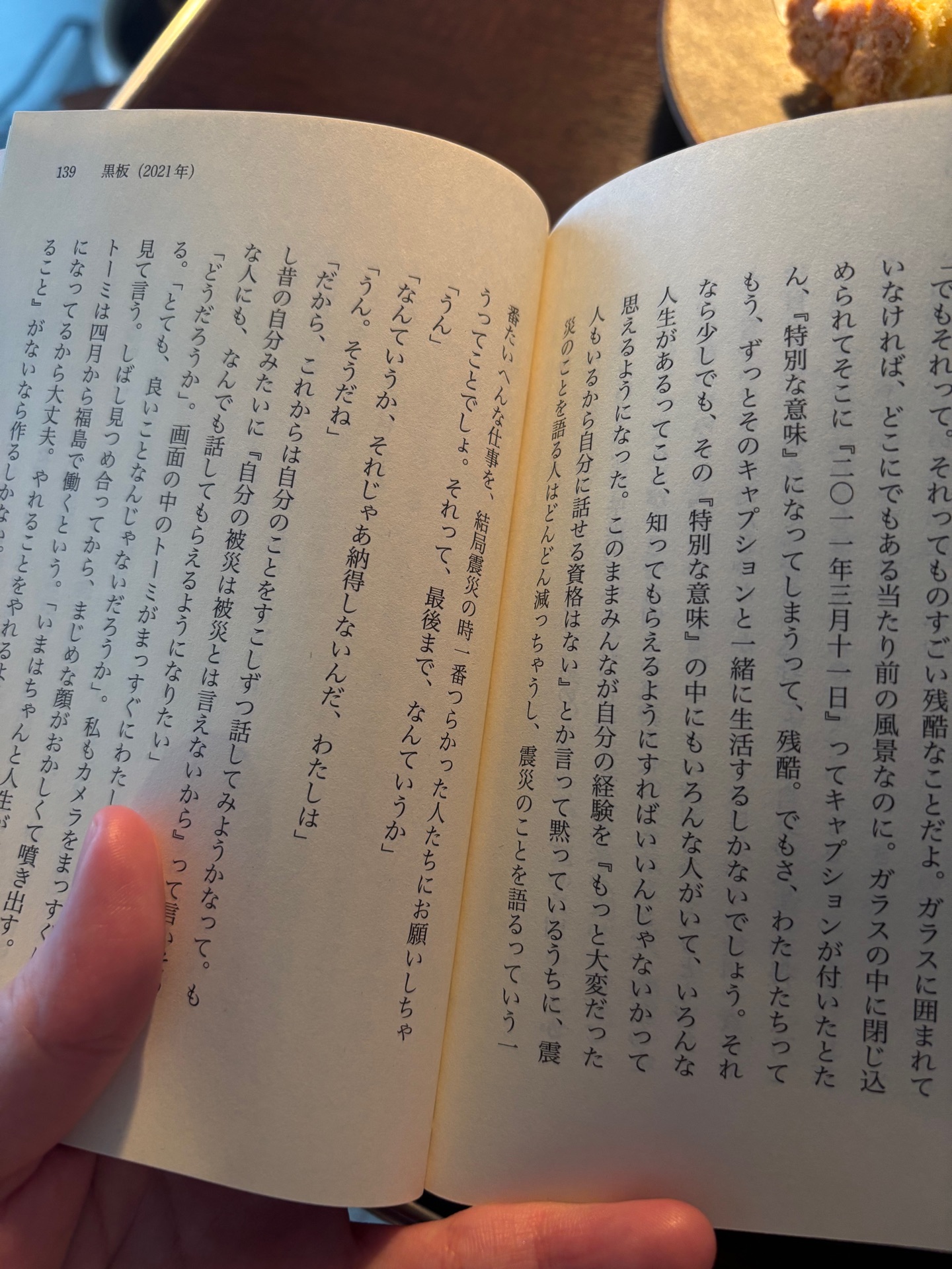 氷柱の声くどうれいん読み終わった「うまいものをたべる。人と会う。それが生きるってことよ」 もしかしたらこの十年間、この炎はずっと私の中で静かに燃えていたのではないか。 p.143 この風景を見ていない人が何を言ってもにせものだと思ったし、ここに波が来るのを見ていないわたしが何を言ってもにせものだと思った。 あとがきに綴られた文章を読み、れいんさんに会ったことも、目の前でお声を聞いたこともないのに、まるで同じ空間でお話してくれているみたいな感覚になった。れいんさんの声だ、と。 わたしが震災当時から今まで、15年間抱え、どうしようもできなかった思いや、記憶や、武装しようのない脆い部分が何度も揺さぶられて、それなのに、決して傷つきはしなかった。 わたしはわたしの感じたこと、いま現在感じていることを否定せず、そのまま持っていて良いのだなと心からそう思えて、れいんさんのたましいを目に見える形でこの世に遺してくれてありがとうございますとお伝えしたい。