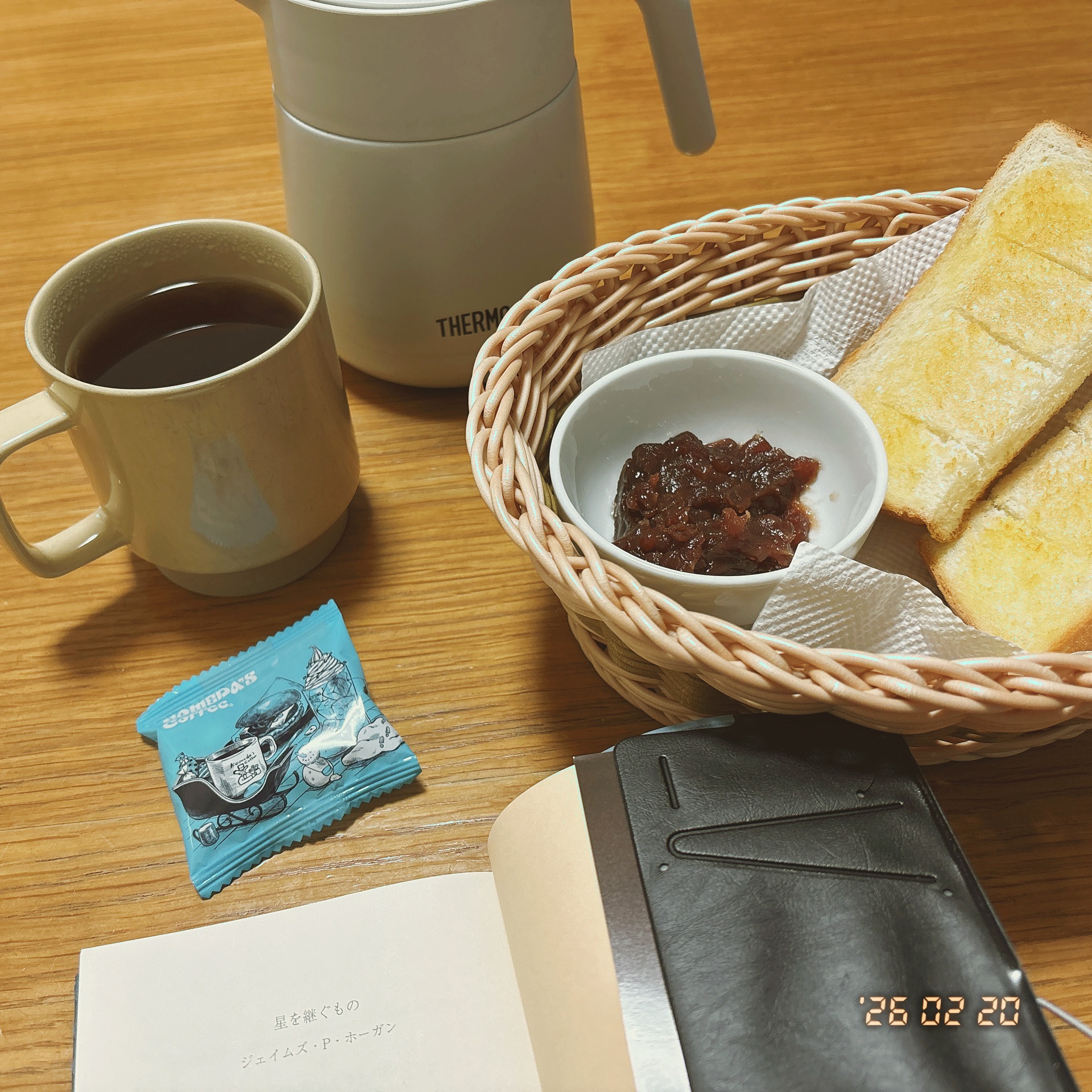 星を継ぐもの【新版】ジェイムズ・P・ホーガン,池央耿読んでる@ 自宅特命研究班グループLが始動した コツコツと嵌め絵の齣に色を塗る人と、それを並べて絵を完成する人、という例えがいいなぁ 私はコツコツ黙々が得意だけど、ハントのように俯瞰して色々見ることができる立場への憧れがあるな 先日はじめて訪れたコメダ珈琲がとてもよかったので、今日はおうちでコメダ珈琲ごっこ 「コメダ特製 小倉あん」も添えて、いい感じ 飲み物のおかわり自由なのも、おうちのいいところ