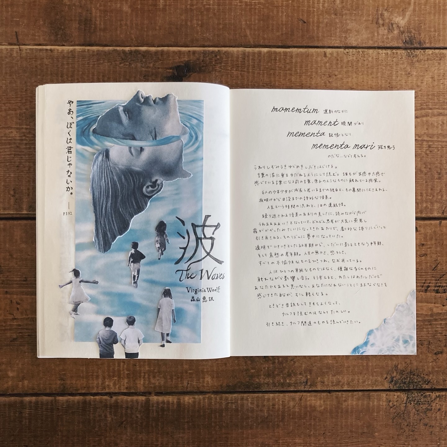 波〔新訳版〕ヴァージニア・ウルフ読書日記読書ノートうねりしずみうきゆらめきしぶきはじける。言葉の波に身をゆだねるようにして読む。誰もが五感や六感で感じている言葉になる前の言葉、原子のようなものに触れている感覚。 6人の少年少女が成長し老いるまでの独白と、その幕間にはさまれる、夜明けから日没までの詩的な情景。人生という時間の流れと、1日の連続性。 繰り返される情景のあまりの美しさに、読みながら内心うわああああい!となっていて、どんどん思考が大気に蒸発し霧がかかったみたいになってきたあたりで、劇的な語りにぐいっと引き戻される、そのリズムに夢中になっていた。 透明でいきいきとした幼年期から、しだいに影をともなう中年期、そして哀愁の老年期。人生の無力さ、恐ろしさ、すべての不愉快なものをひきつれ、なお光っている。 人はひとつの単純なものではなく、複雑な多くのものに触れながら影響し合う。そう考えると、わたしはわたしだけどあなたでもあるのだと思いなし、あなたになれないことにままならなさを感じてきた自分が、すこし軽くなる。 ときどき音読もしてきもちよくなって、ウルフを読むのはなんてたのしい。引き続き今年もウルフ関連のものを読んでいきたい。