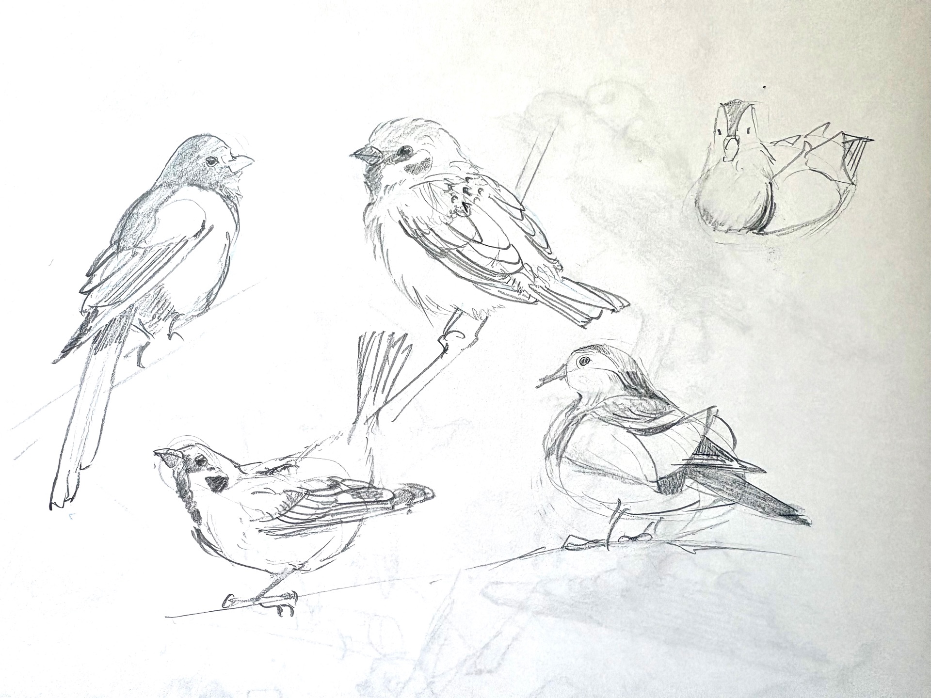 鳥の描き方マスターブックジョン・ミューア・ローズ,森屋利夫今度旅行で鳥を野外スケッチしたいと考えているので、勉強。難しい!!!!鳥はいわゆる「動物」の描き方という括りだと除外されてることがあり(実際うちにある本はそう)、なぜ?と思ってたけど、実際読んで納得。鳥、特殊。鳥というジャンルだけで独立しないと書けないし、それでも足りないくらい。鳥を描けるようになったら、きっともっと人生が楽しい。 実地では詳細には絶対に描けないので、簡略化したフォルムを描けるようにしたい。でもそうした「鳥らしさ」をすくいとるには構造を理解する必要があって、そのためにはある程度詳細を描いて練習するところから。