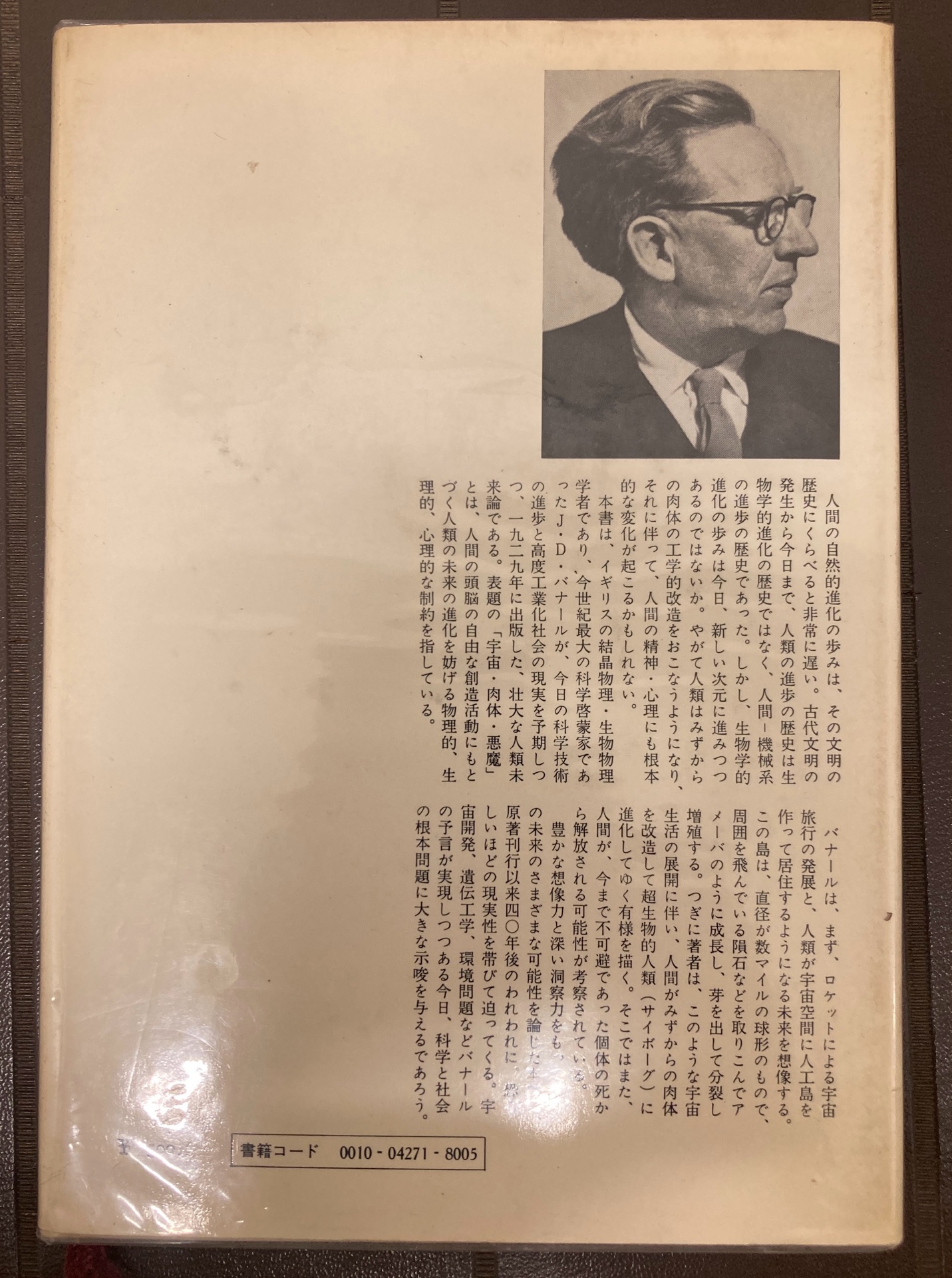 宇宙・肉体・悪魔 [新版]J・D・バナール,瀬名秀明,鎮目恭夫読み始めた古本昼休み職場今日から昼休みに読む本はこれ。実際に手元にあるのは、1972年5月20日印刷、5月30日発行のもの。2020年7月だかに瀬名秀明解説が付いた新版が出ていたとは知らなかった。![宇宙・肉体・悪魔 [新版]](https://d2vswqi5nxcpat.cloudfront.net/post-images/96232cda-46aa-4147-a0e4-30d15a1914af.jpg)