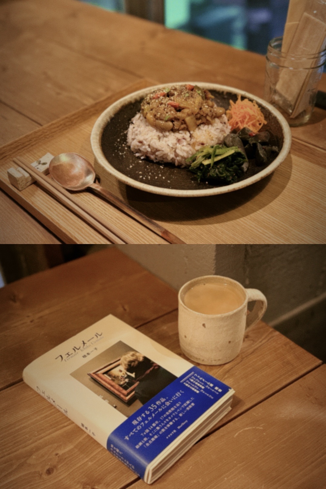 フェルメール植本一子読み終わった@ 本の読める店fuzkue初台1月9日(金)の夜 ☕注文したもの アマレット・カフェオレ880円 長ネギと蓮根と白インゲン豆の冬カレー1320円 フェルメールの絵が来日する、というニュースが美術界隈で話題になった矢先、本棚で偶然この本を見つけた。 他人のエッセイを珍しく面白いと思えたのはなぜだろう。美術という自分にとって関心のあるテーマだからだろうか。 フィルムカメラで撮るヨーロッパやアメリカの風景は情趣に富む。美術館やギャラリーという薄暗い環境でフィルム写真とは、とんだチャレンジだ。けれども、ほんのりザラつきのある質感がたまらなく味わい深い。 筆者が美術マニアではない所もよかった。唐突に蘊蓄を語り出すこともない、フラットな感性。光の魔術師ともいわれたフェルメールの絵の美しさを頭に思い浮かべる。撮影をしながら、写真では表現しきれないリアリティをどうにか文章で伝えようとしている生っぽさに、のめり込むようにして読んでしまった。