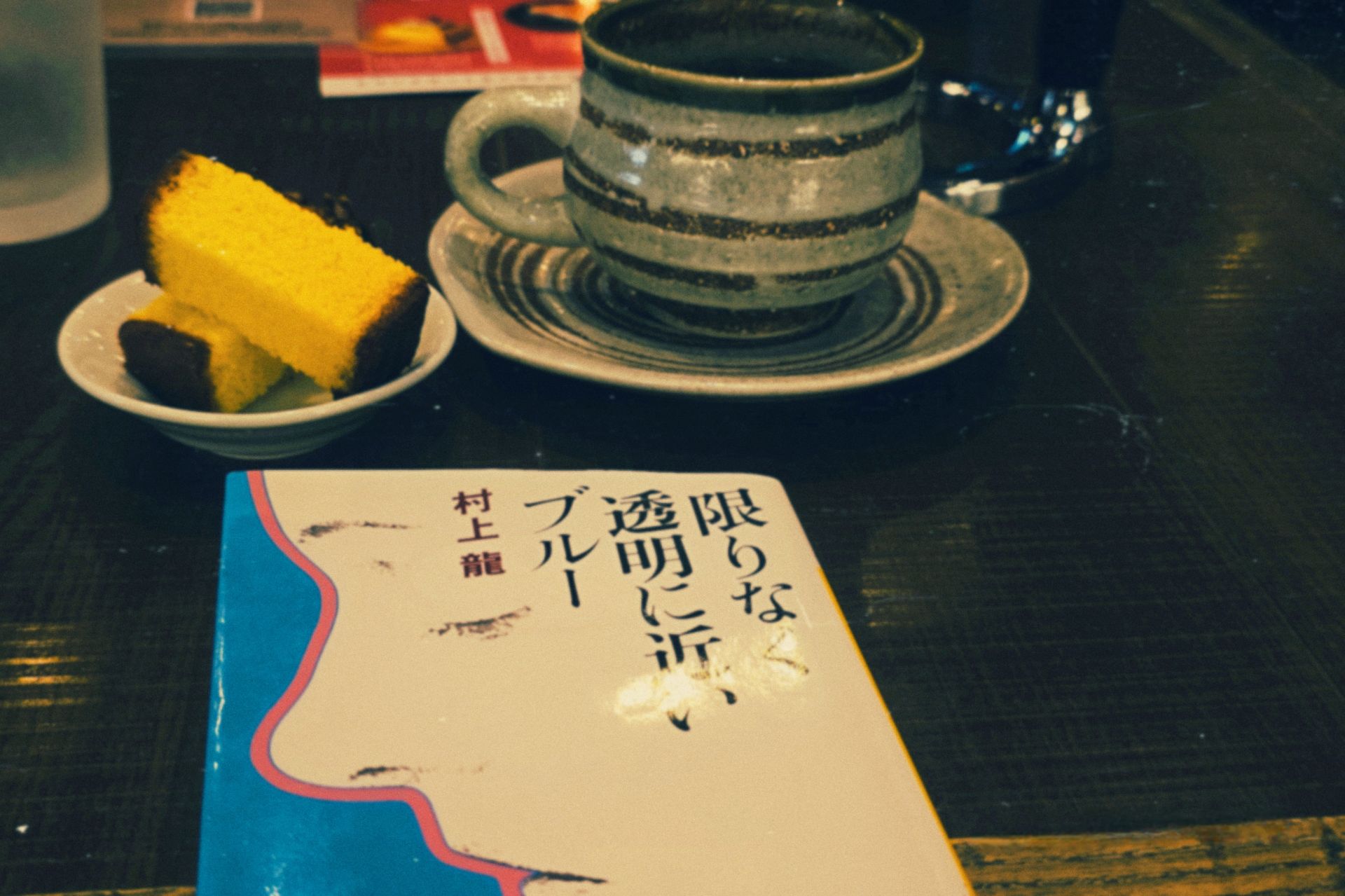 限りなく透明に近いブルー村上龍読み終わった買ったまた読みたい限りなく透明に近いブルーを読みました。 麻薬、性、暴力、酒にまみれた日常を生きる青年たちの物語。 狂ってて、グロテスクな世界をどこか冷めてて、感覚的に見てる主人公。 詩的表現、俯瞰的に捉える演出により私たちは主人公に共感できない、入り込めないという楽しい体験ができます。 まさに芸術